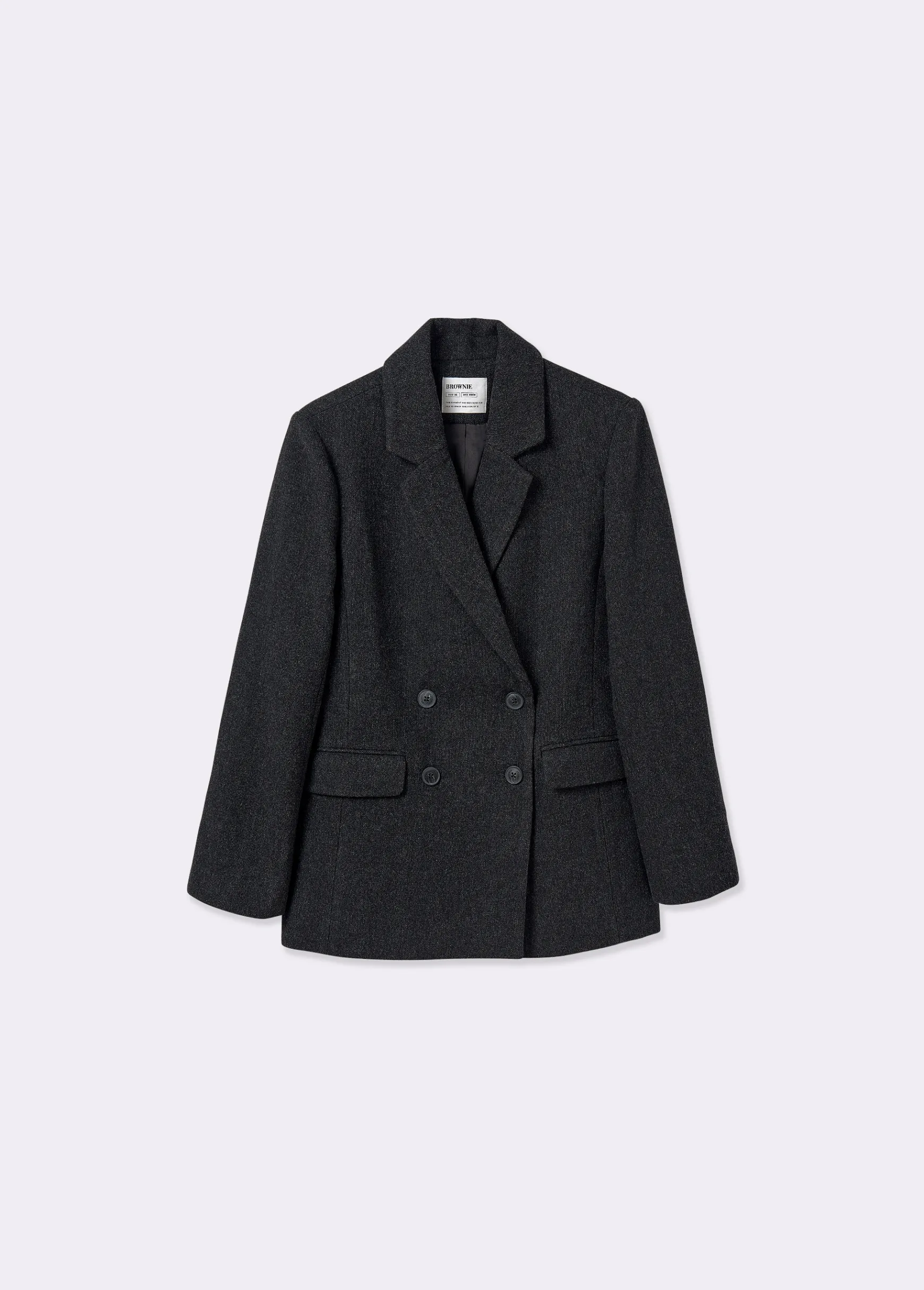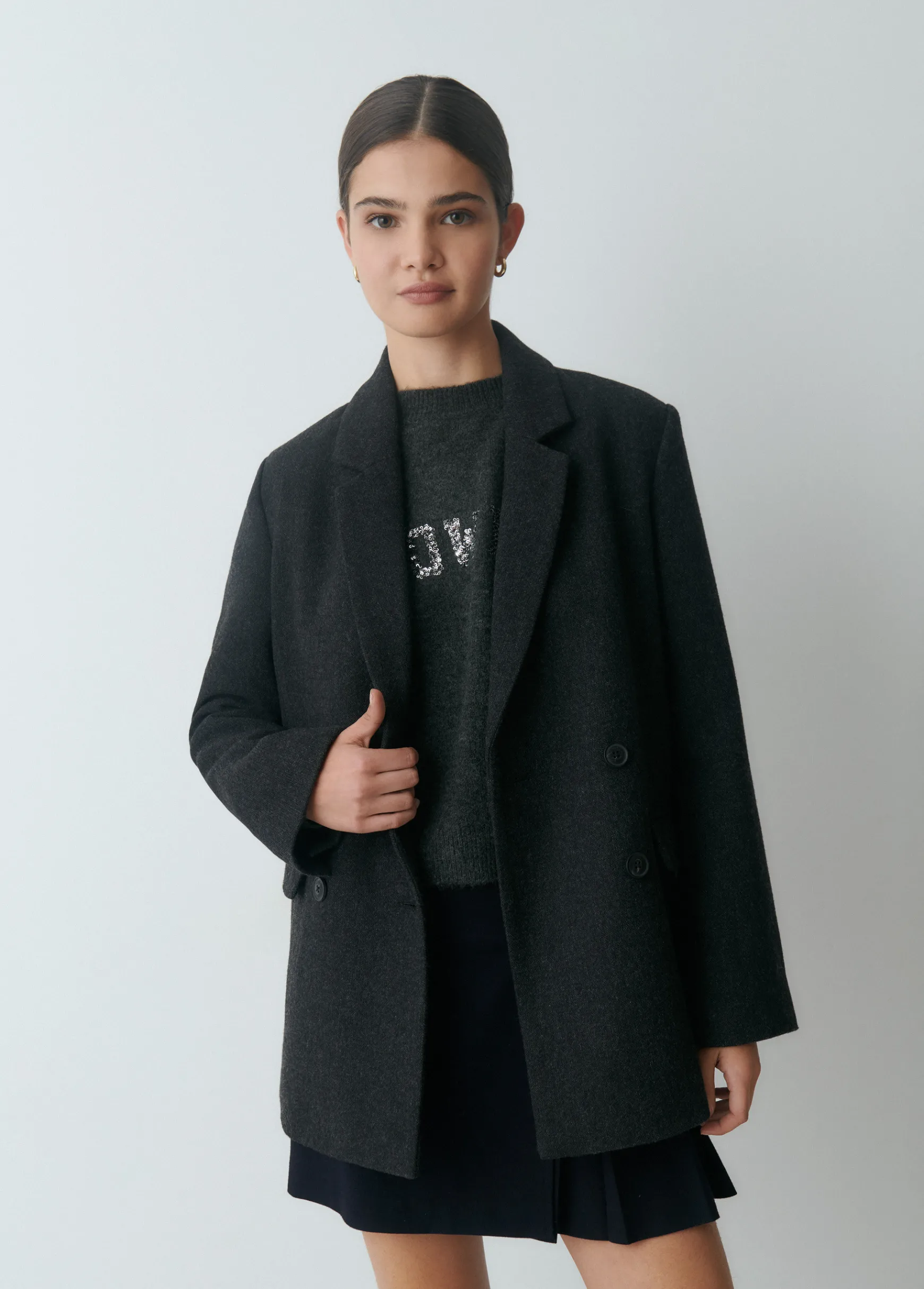 Americana cruzada de manga larga, cuello con solapas y bolsillos. Cierre mediante botones en el frontal.