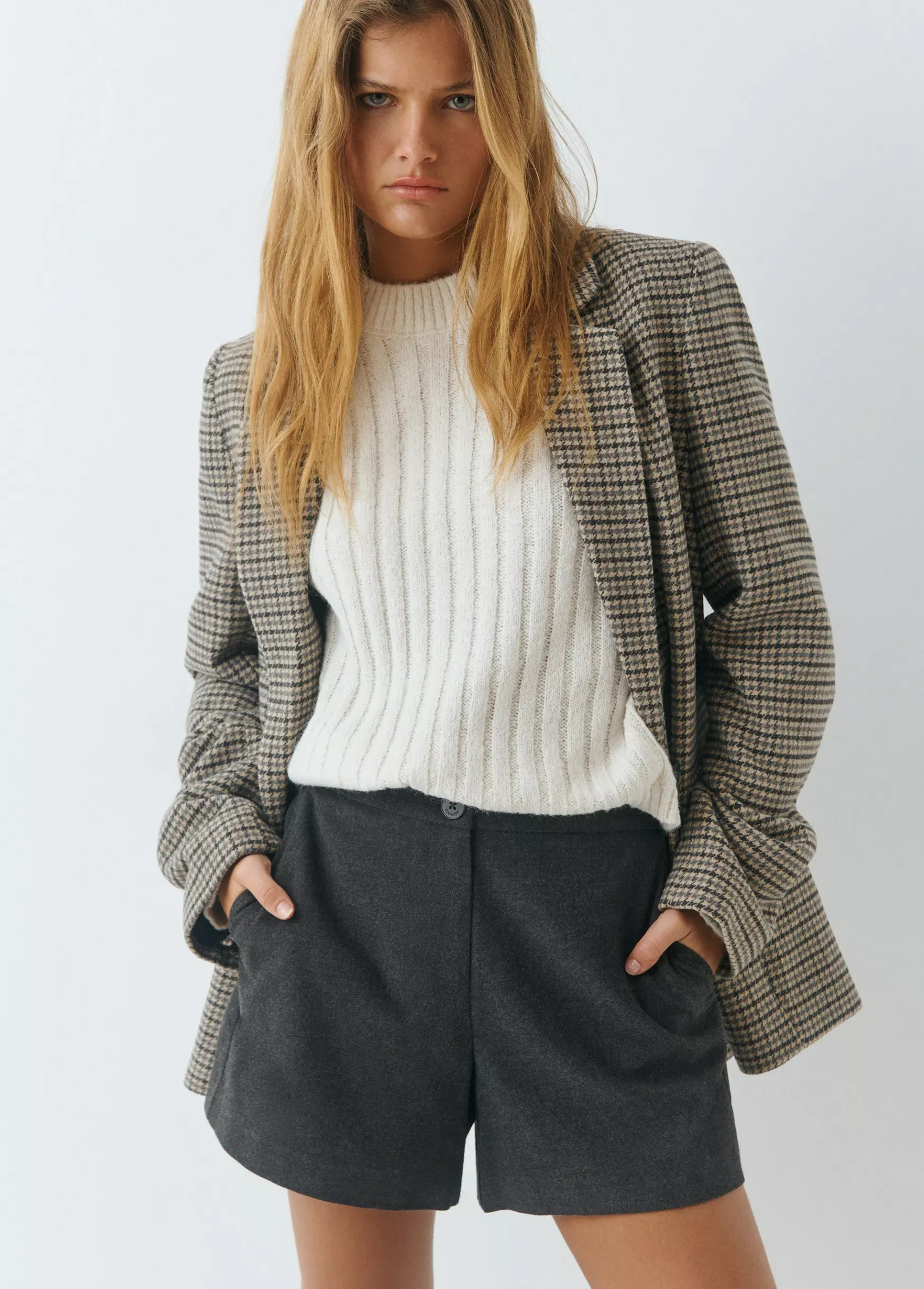 Americana estampado de pata de gallo con solapas, bolsillos y cierre mediante botón en el frontal.