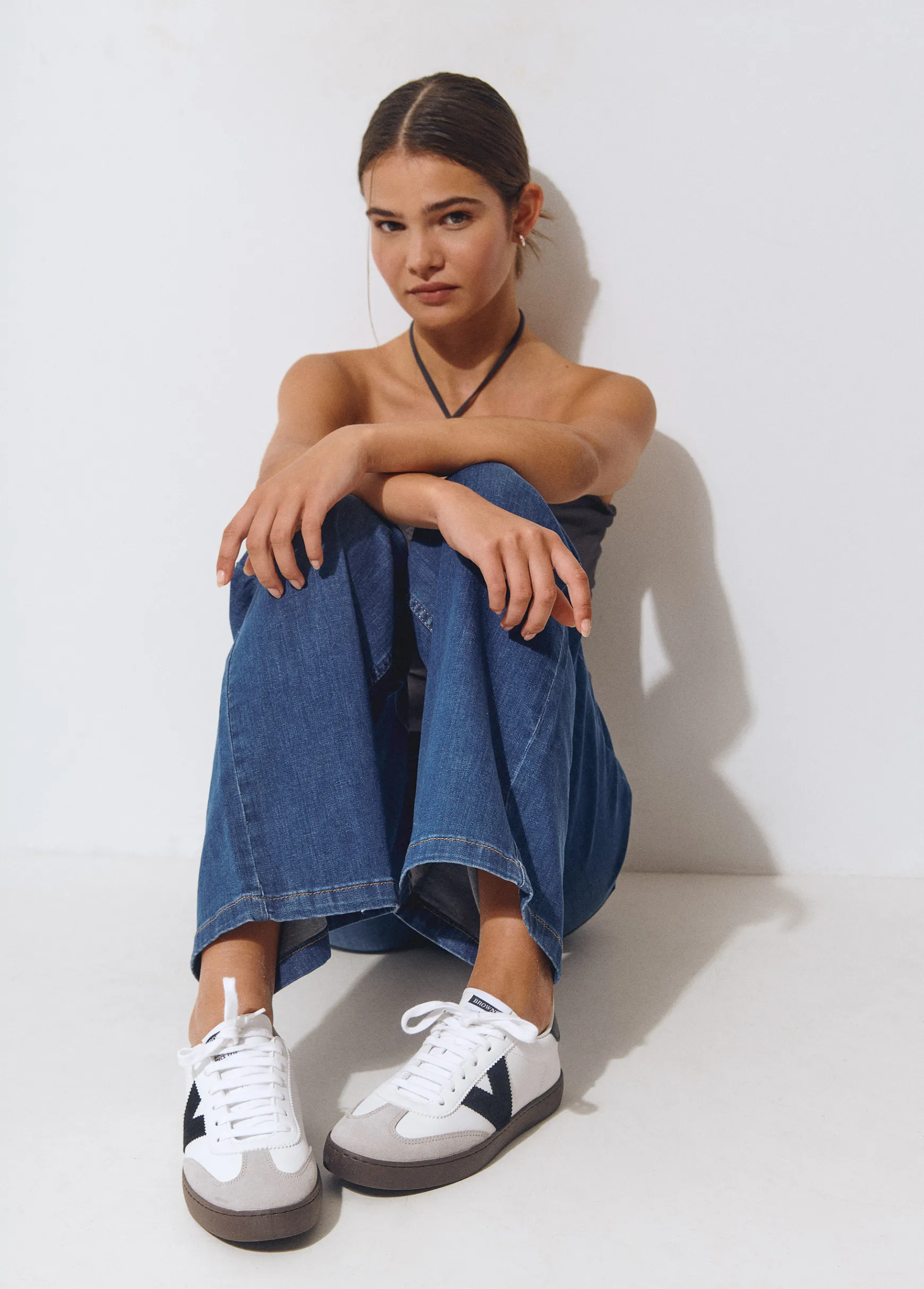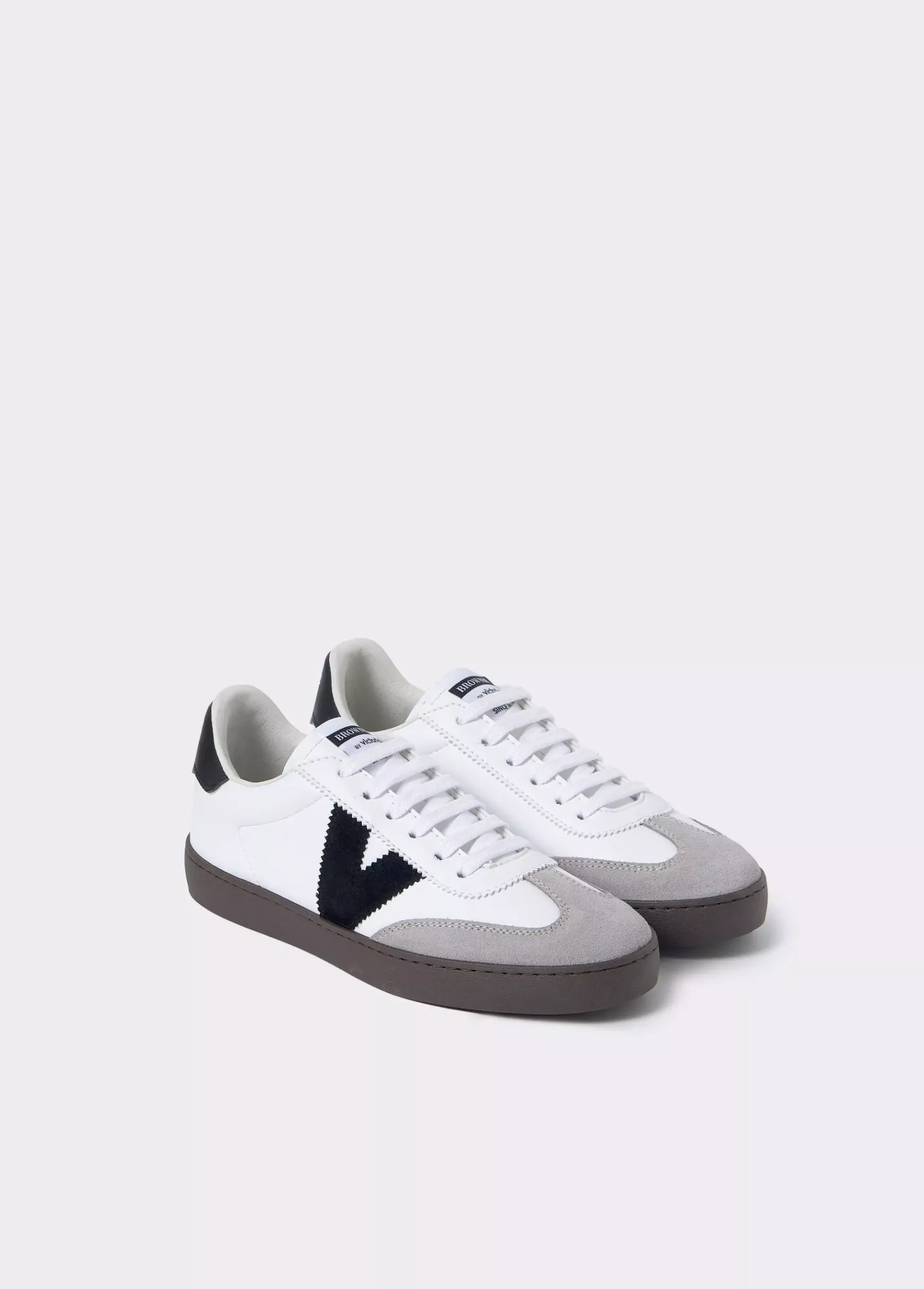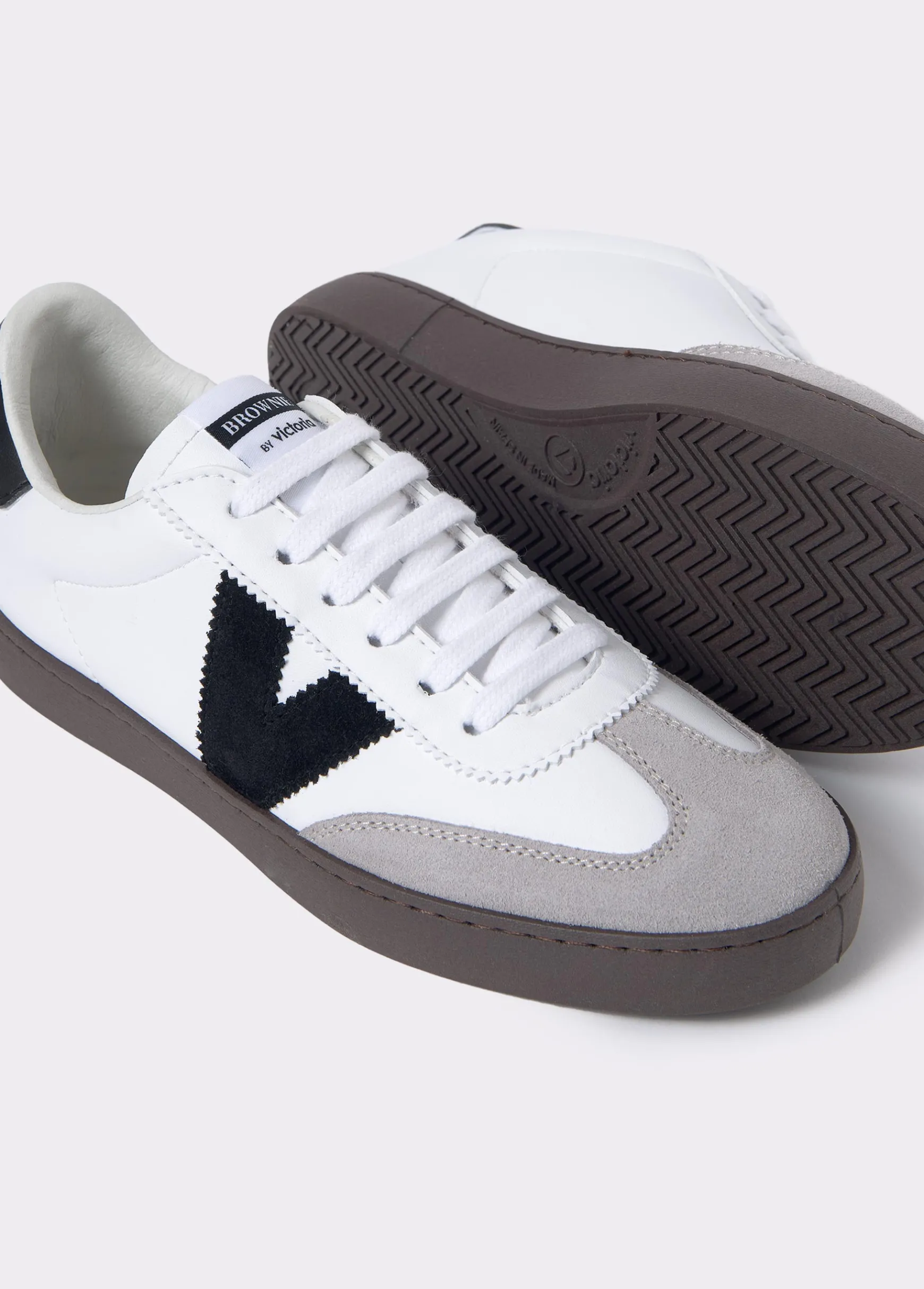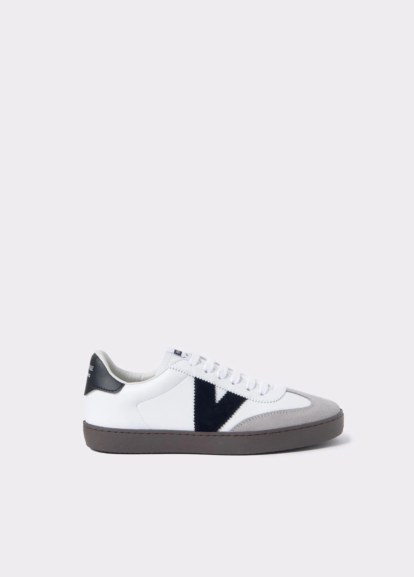 Bamba blanca en colaboración con Victoria con detalles en color negro en los laterales y en la parte trasera.