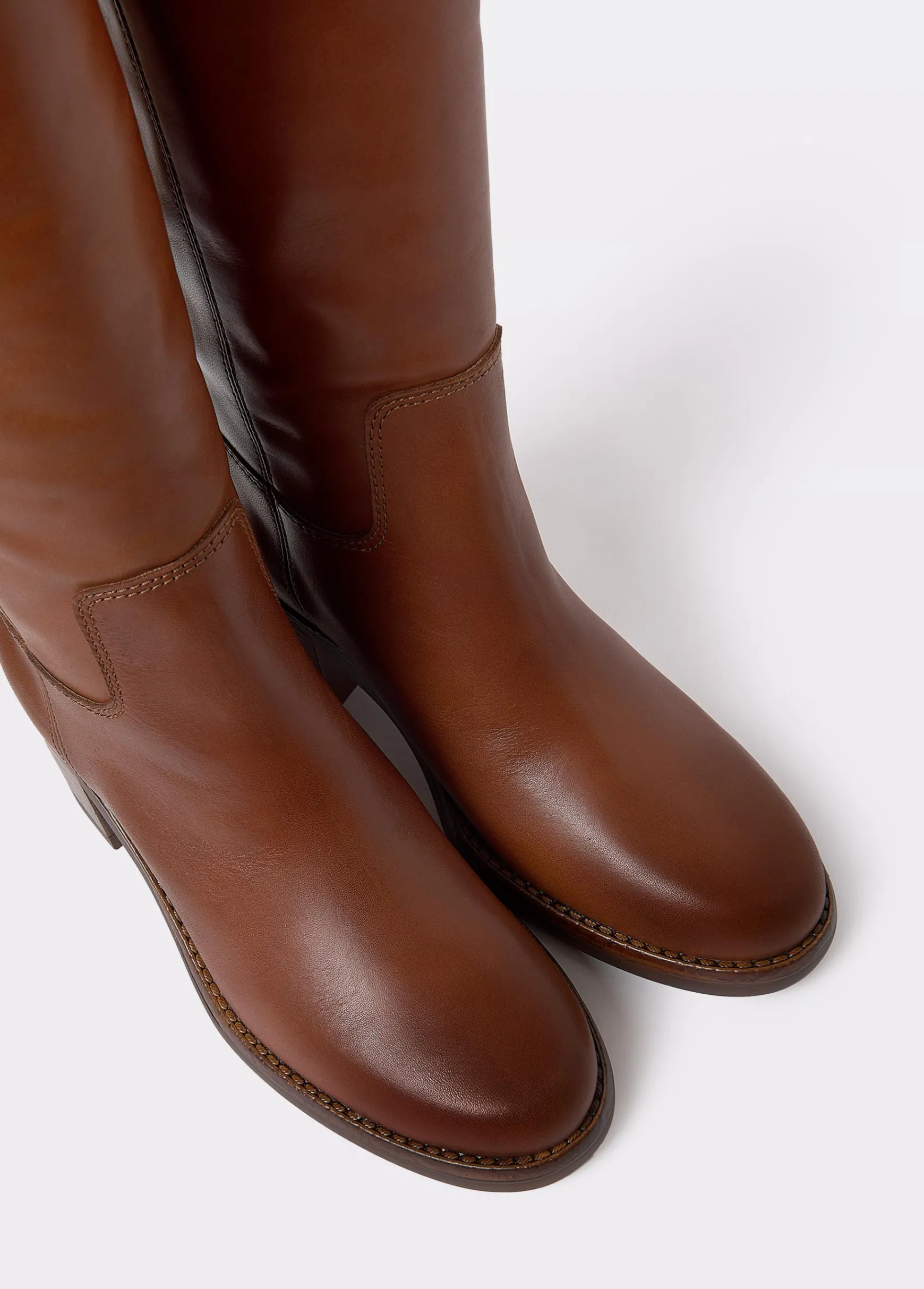 Bota gaucha de piel de alta calidad con tacón en color cuero. Producto fabricado en España.