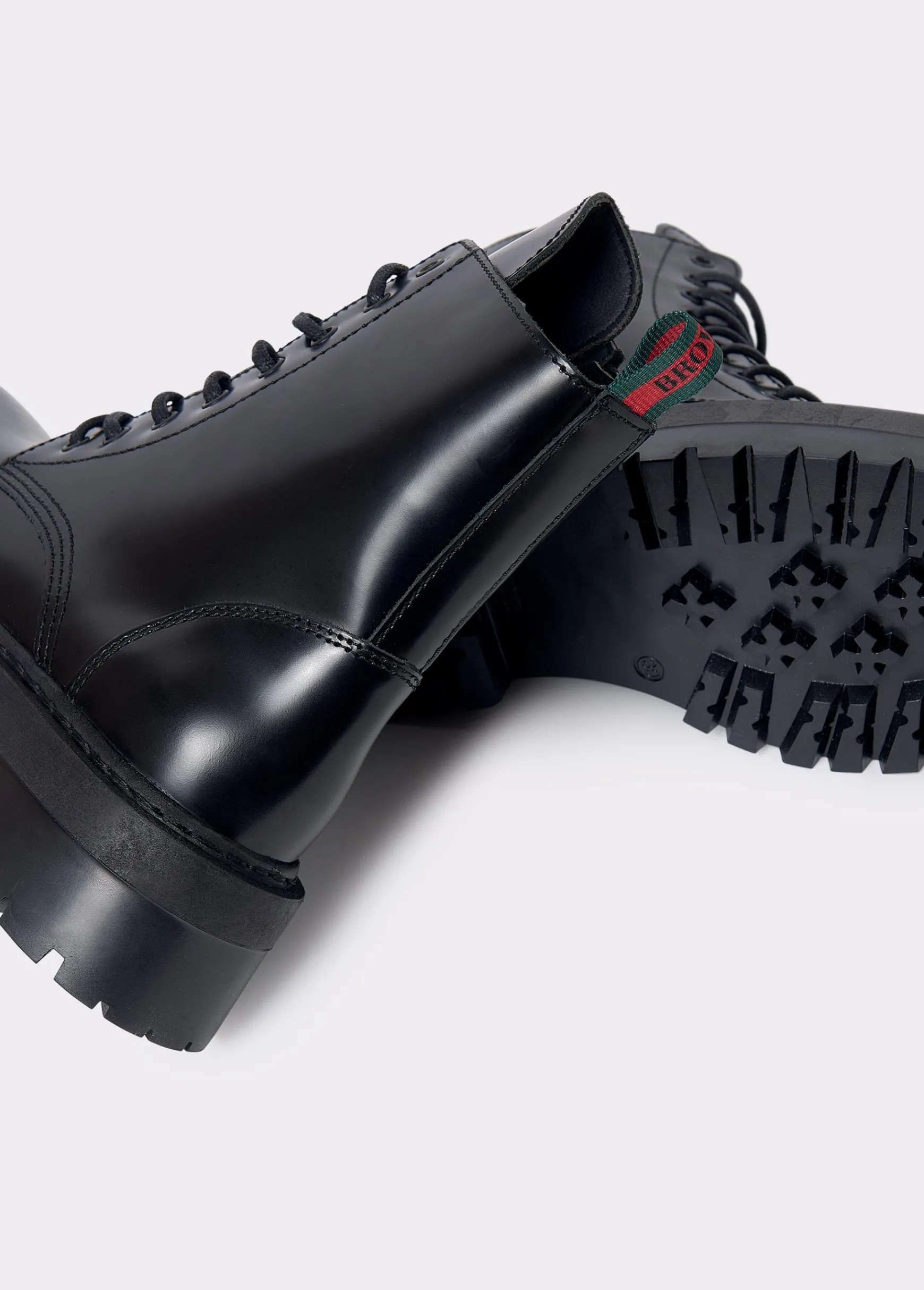 Bota acordonada de piel de alta calidad con plataforma en color negro. Producto fabricado en España.