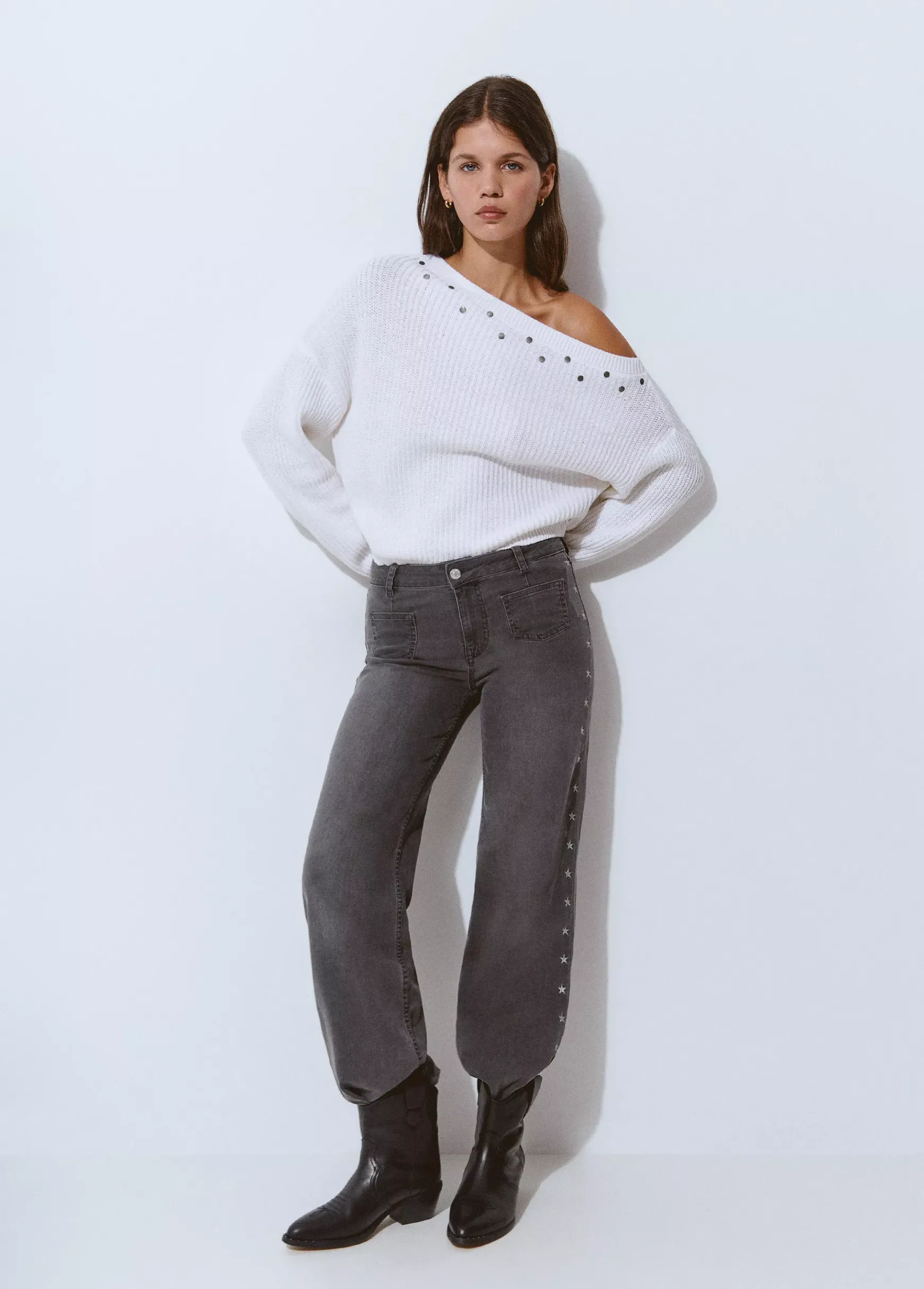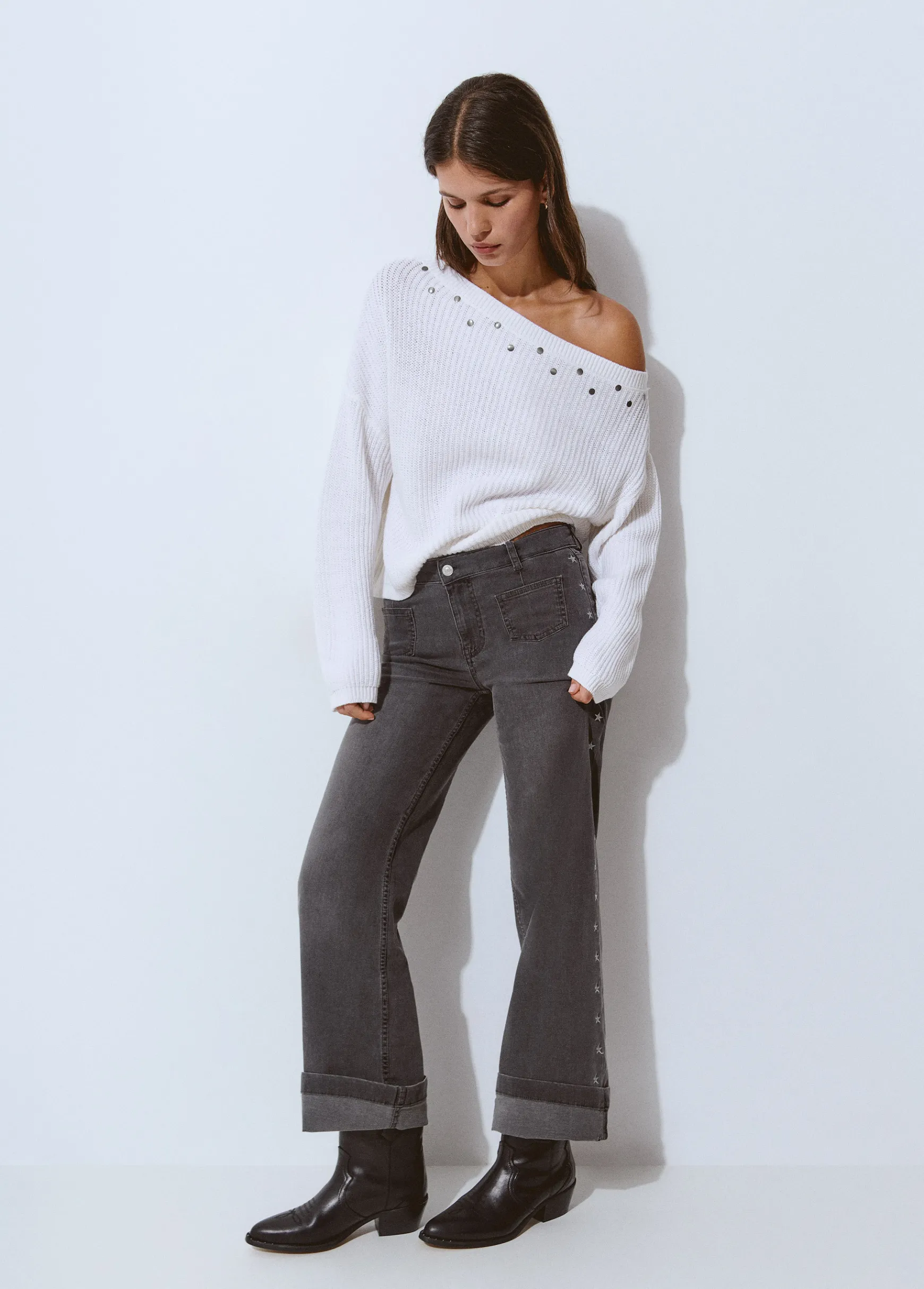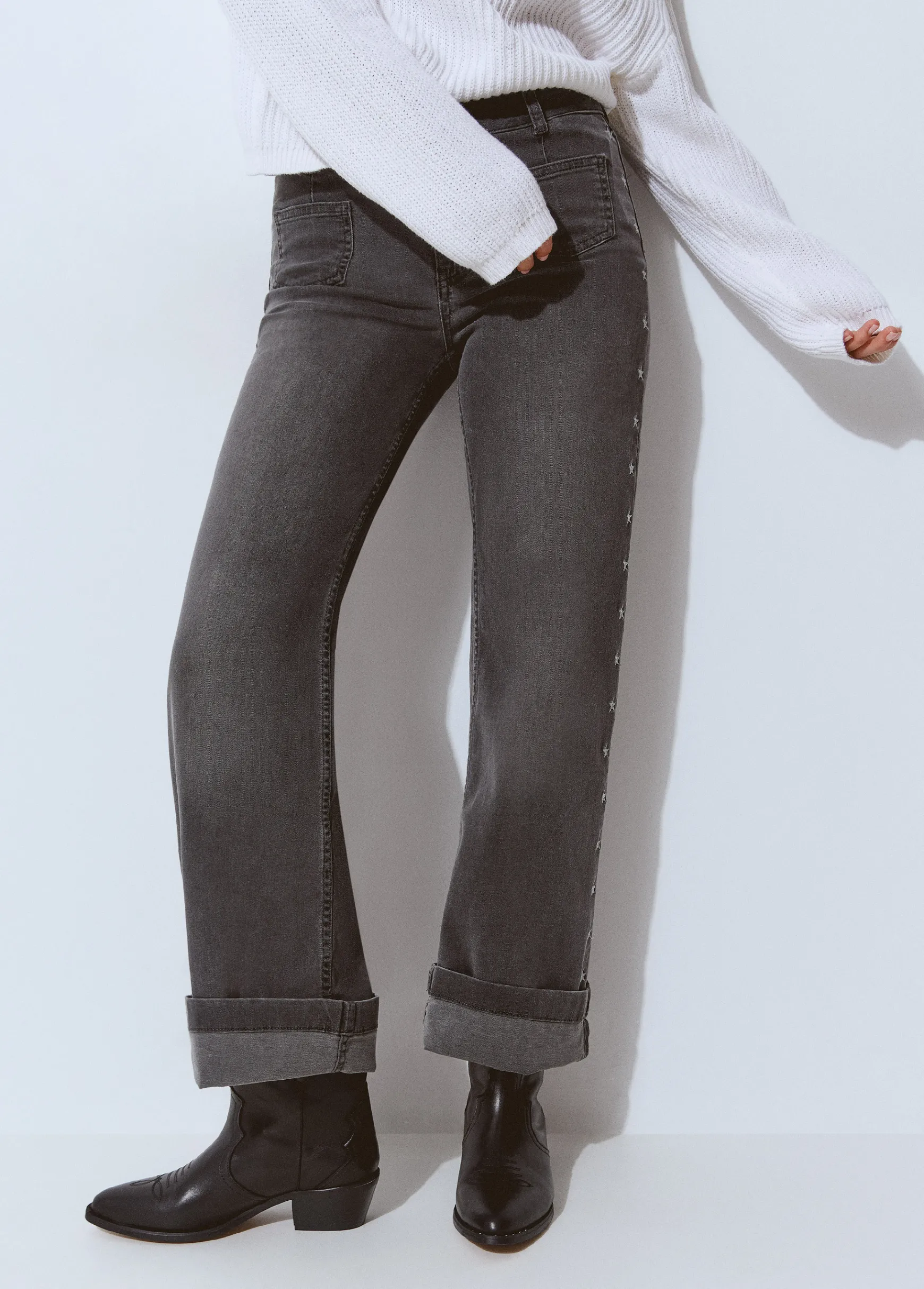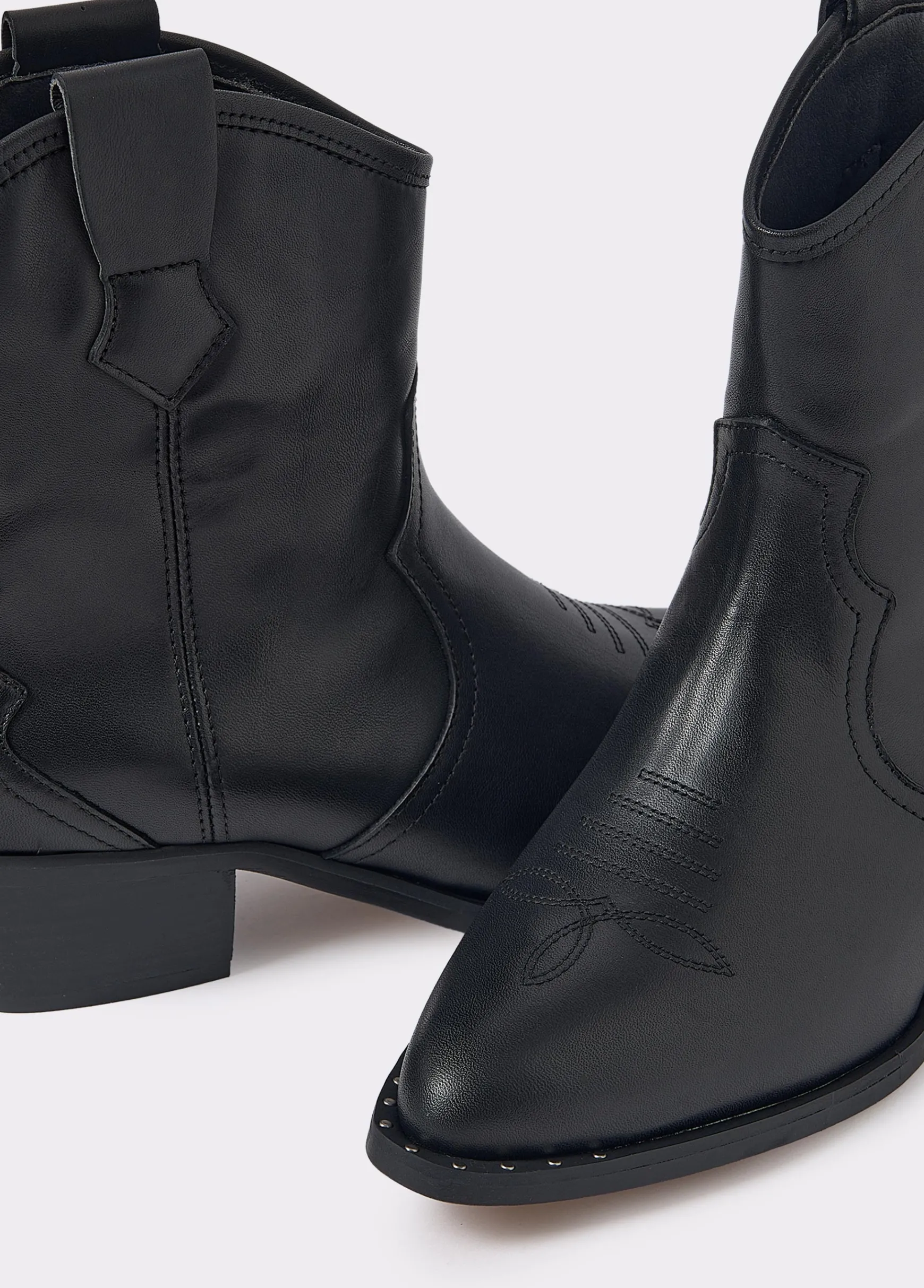 Botín campero de piel de alta calidad con tacón en color negro. Producto fabricado en España.
