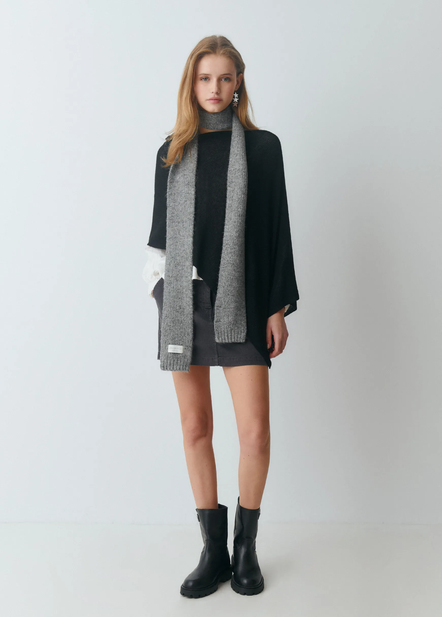 Bufanda estrecha con lurex en color gris medio.