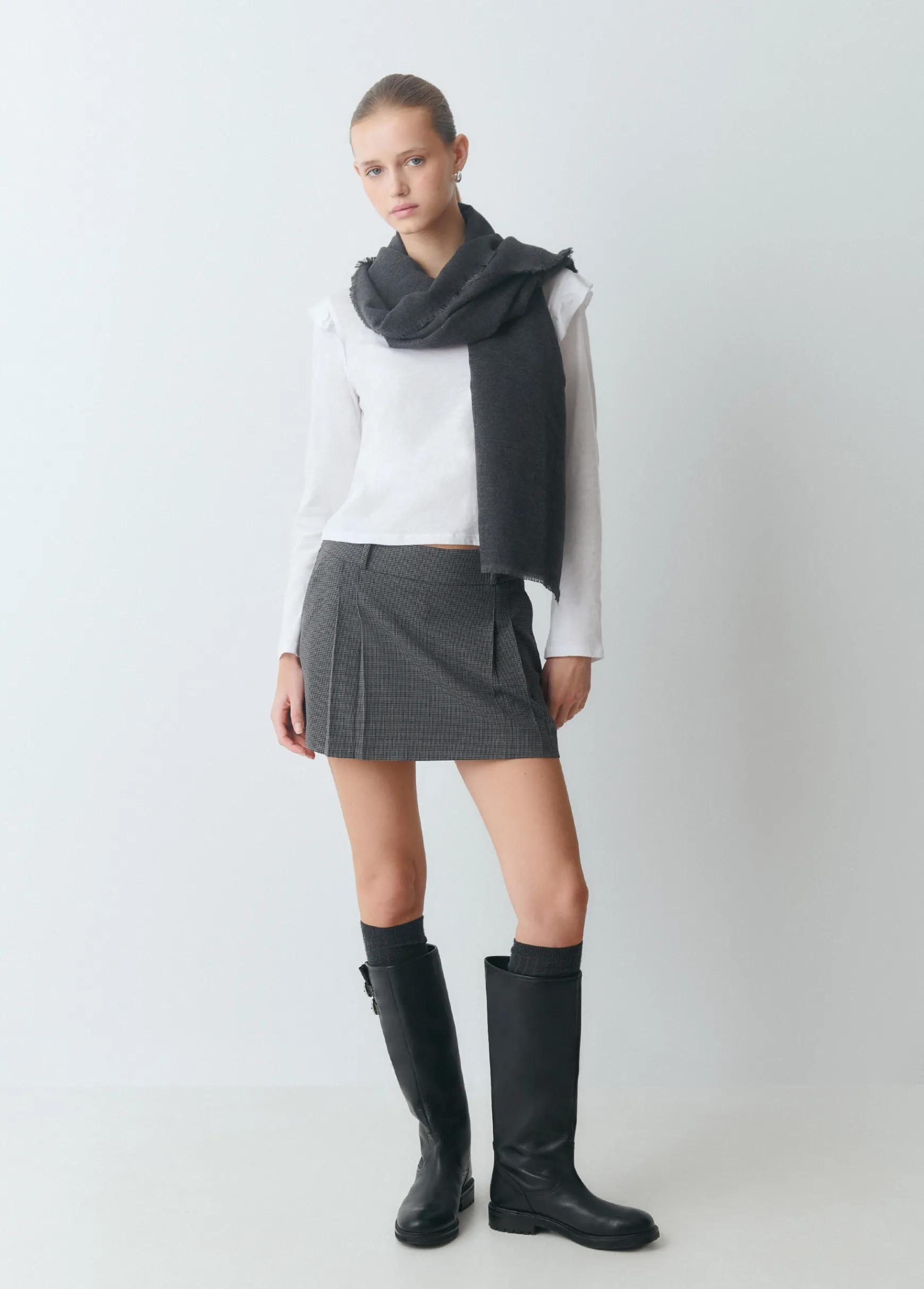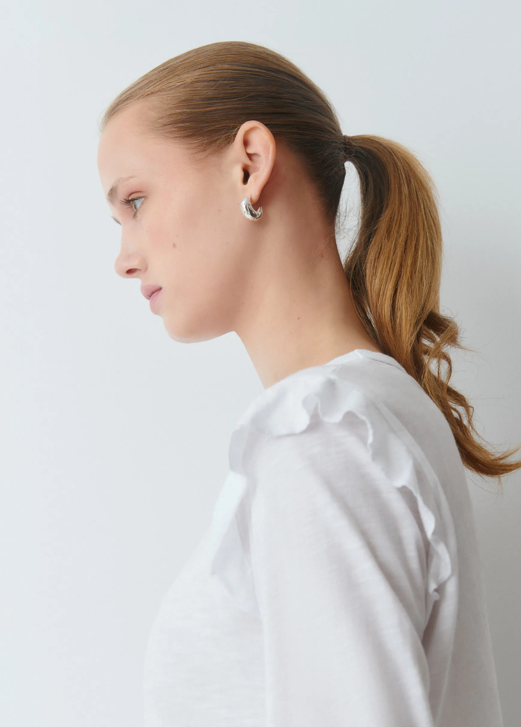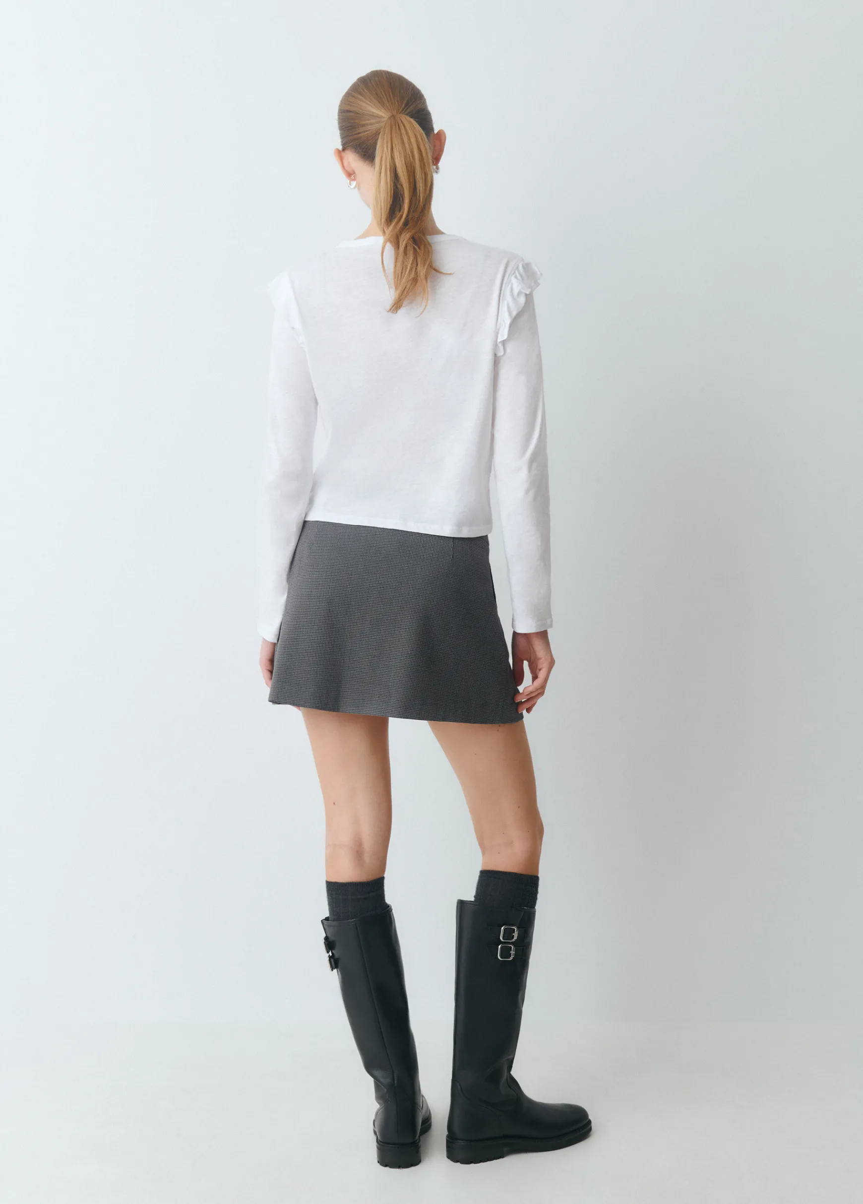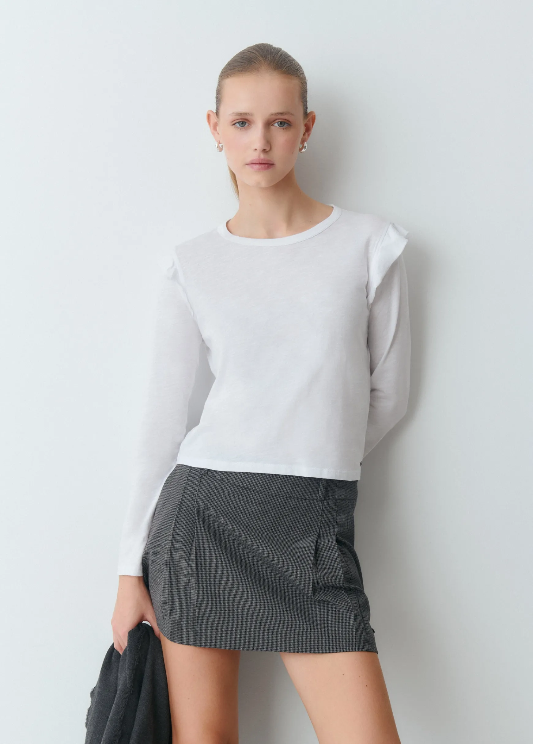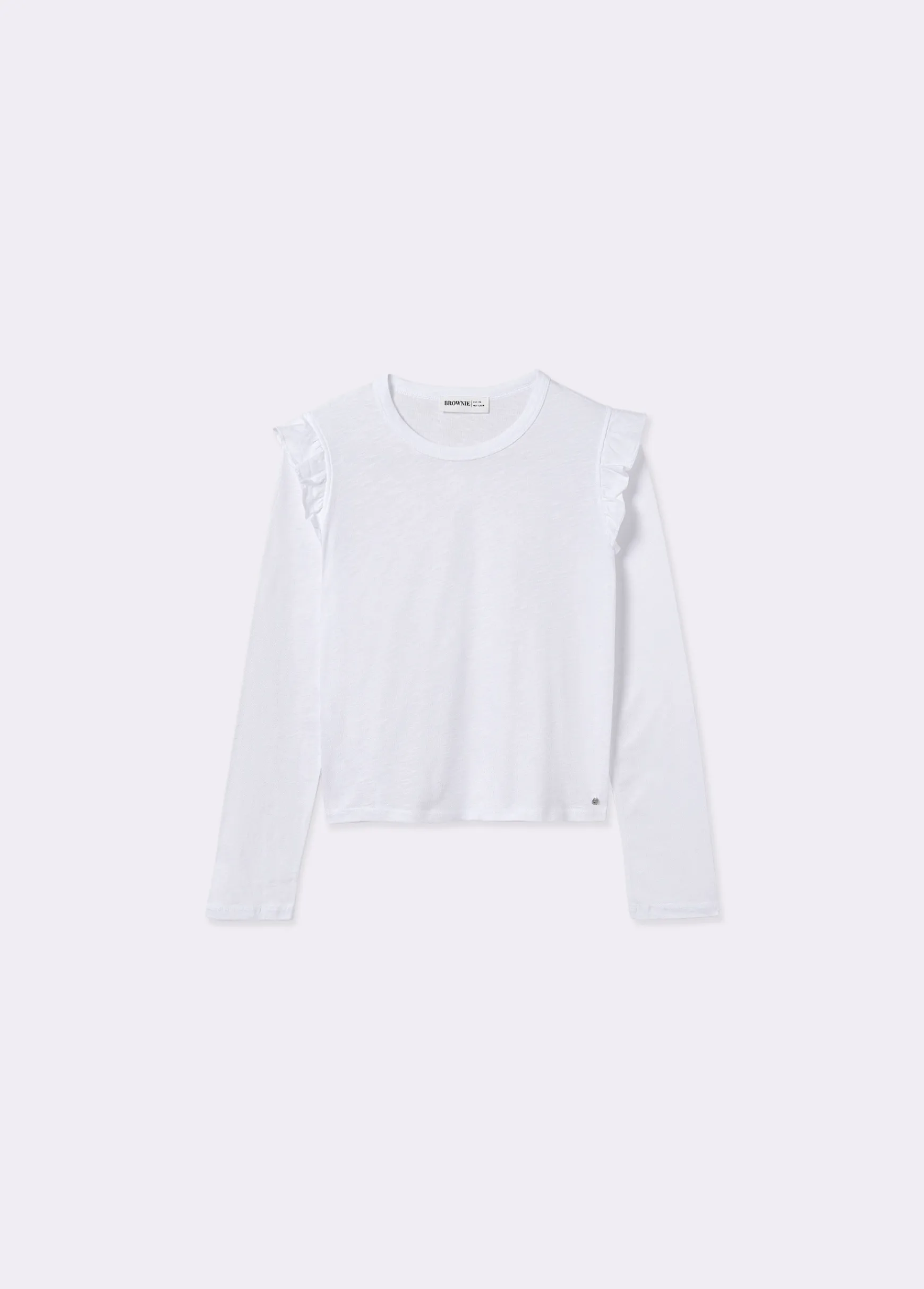 Camiseta de manga larga, cuello redondo y detalle de volantes.