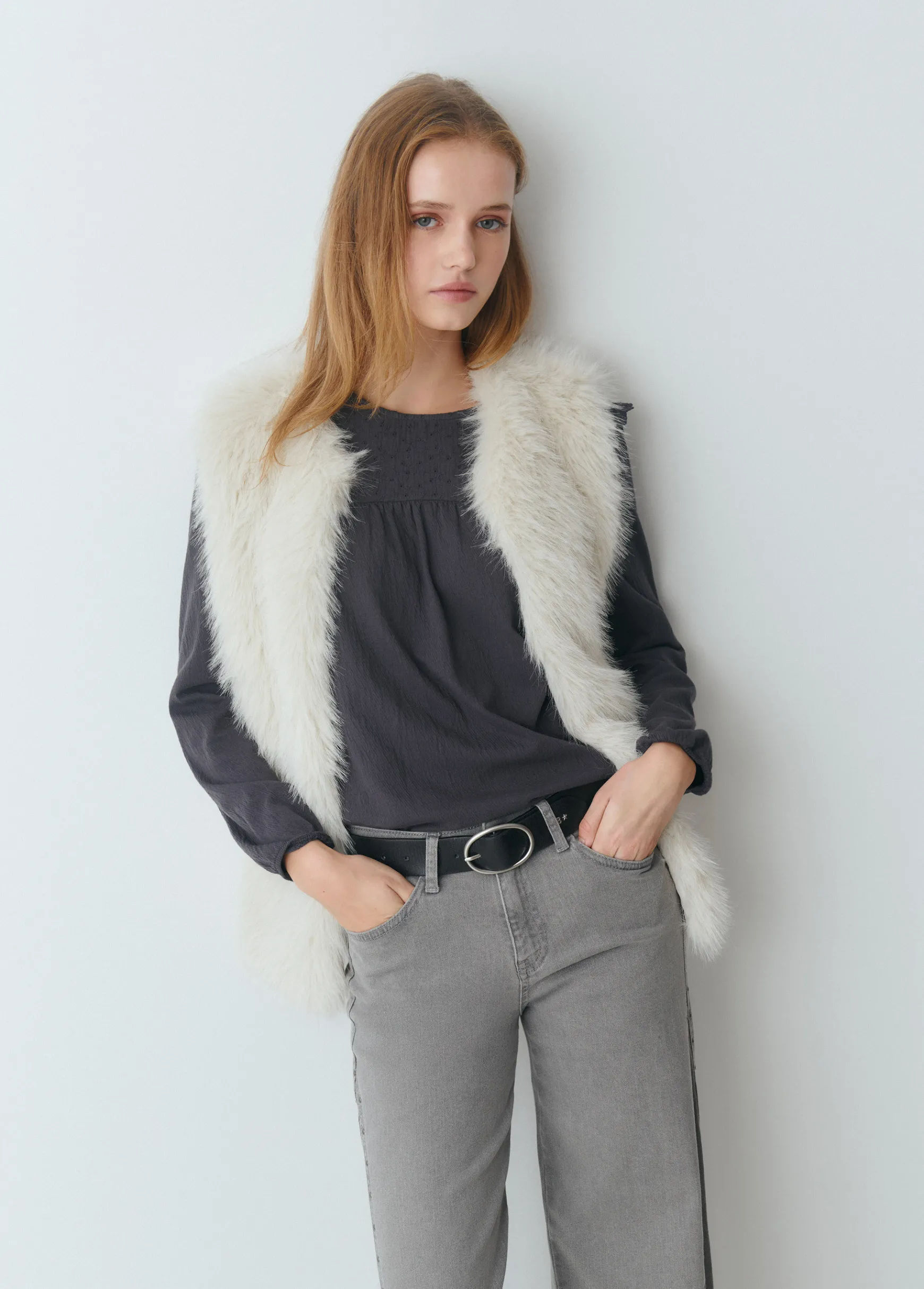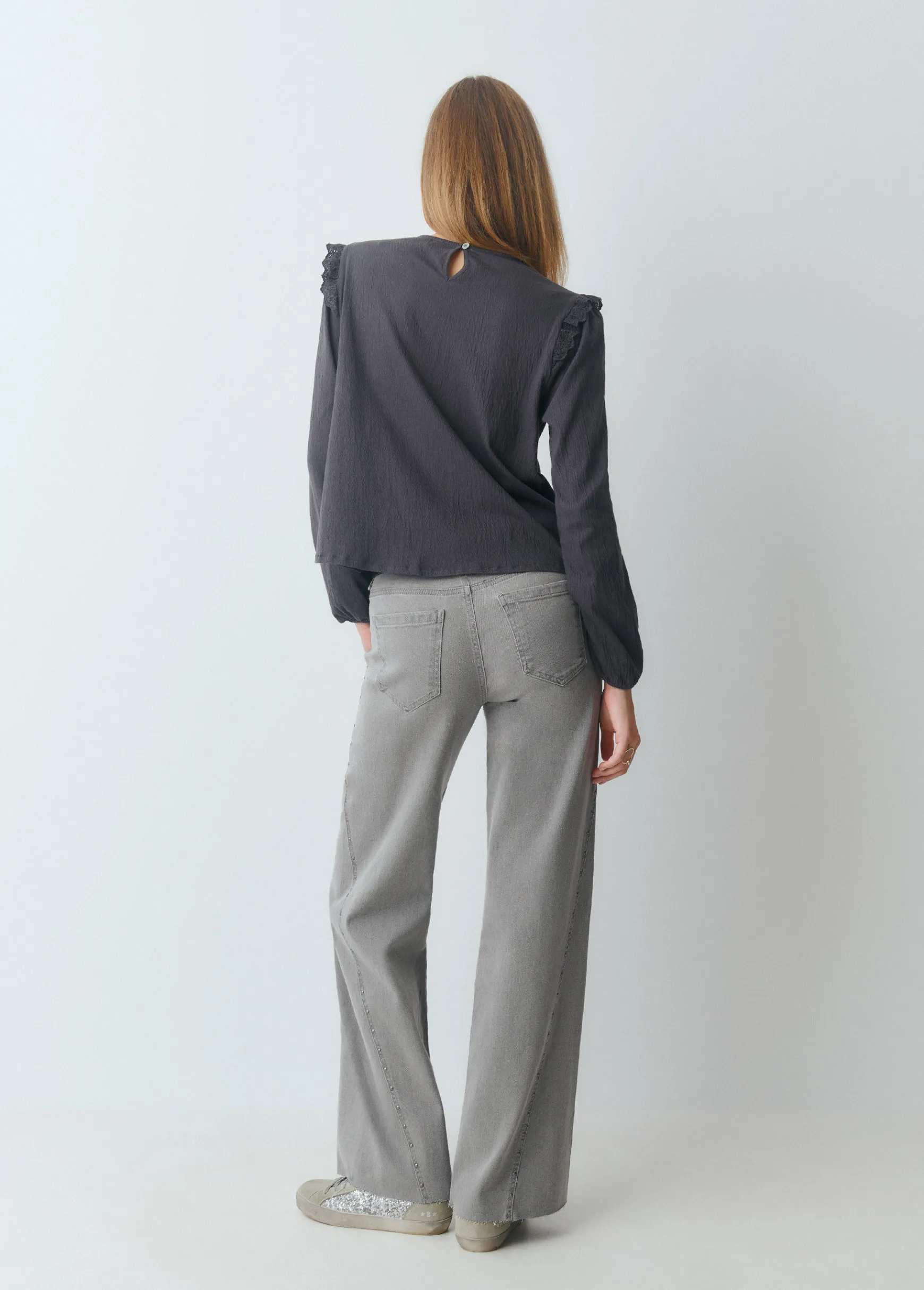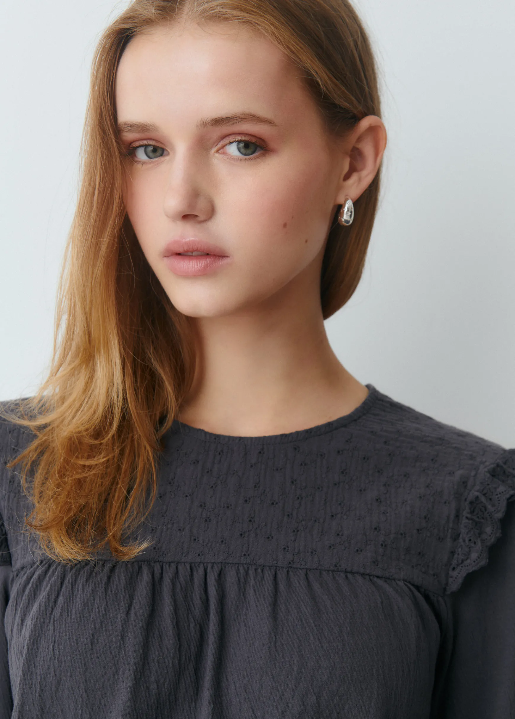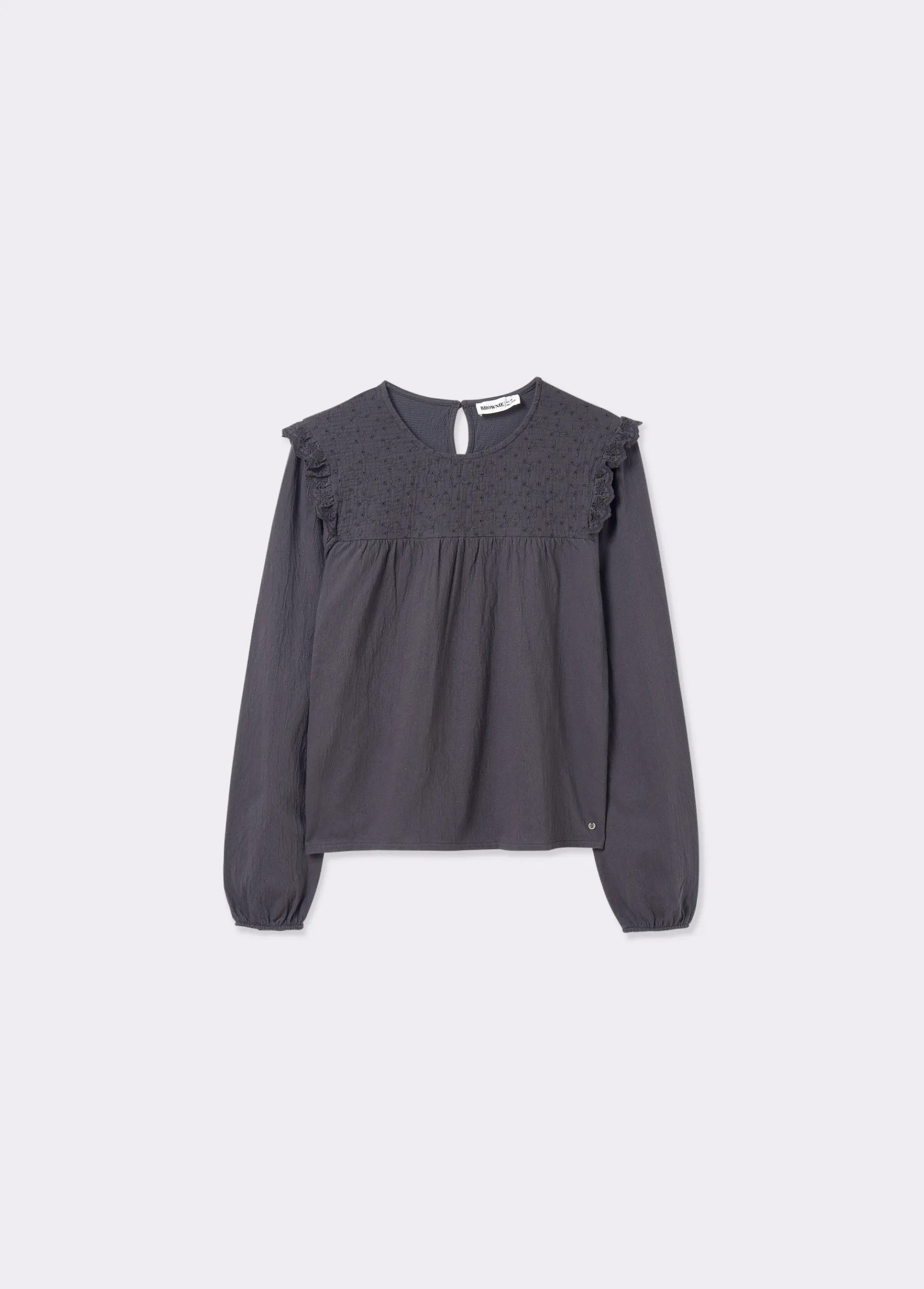Camiseta de manga larga y cuello redondo con detalle de volantes.