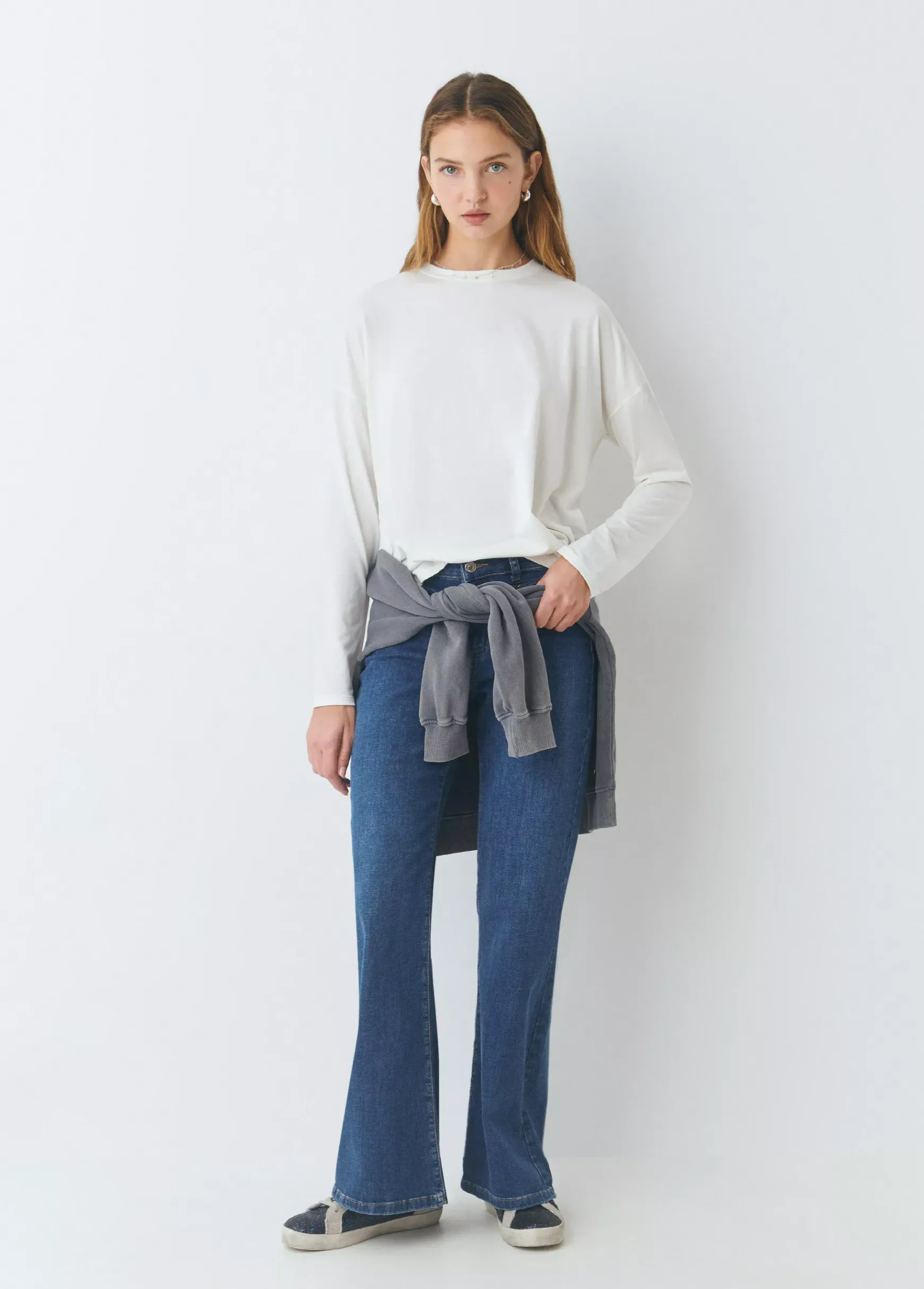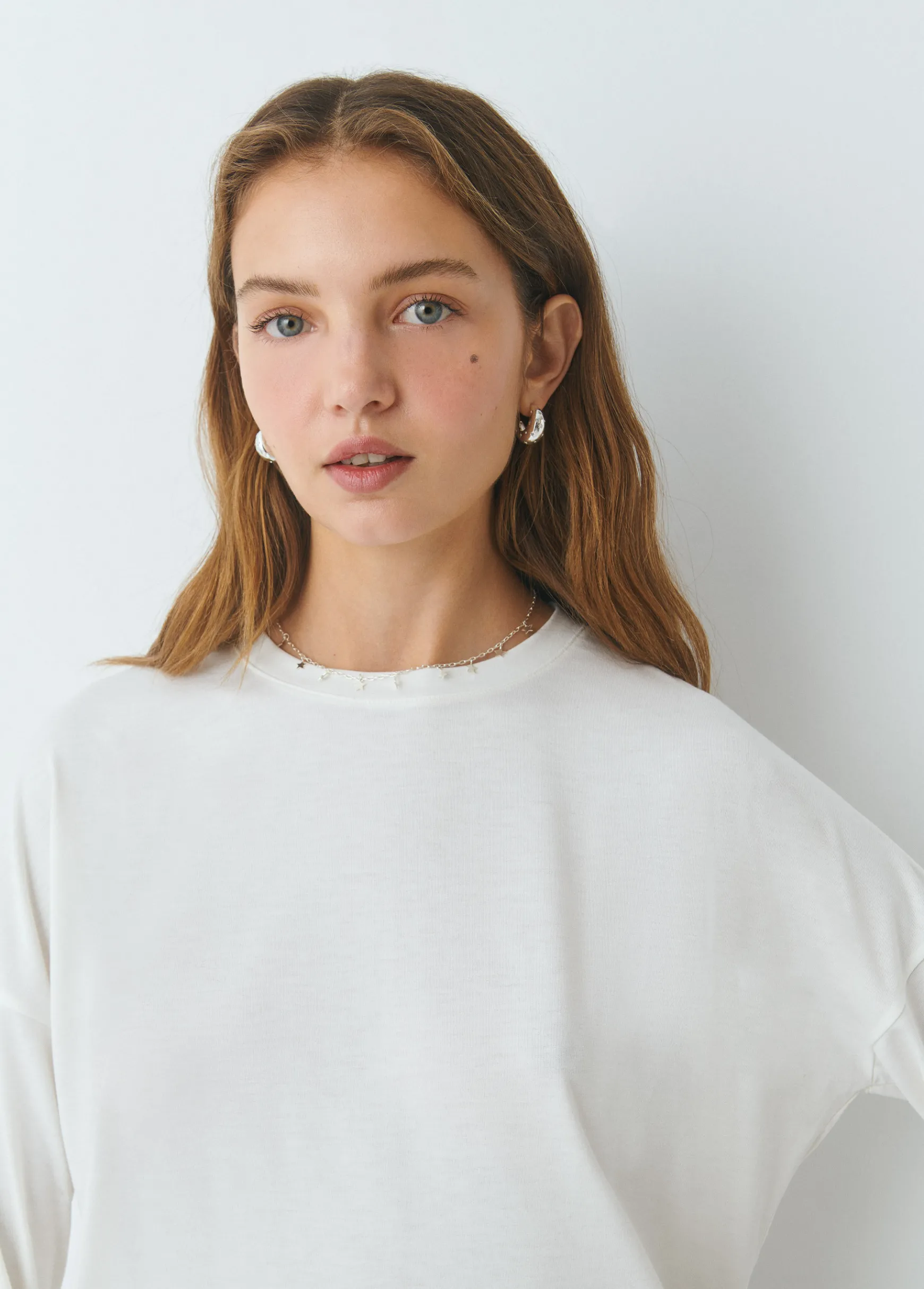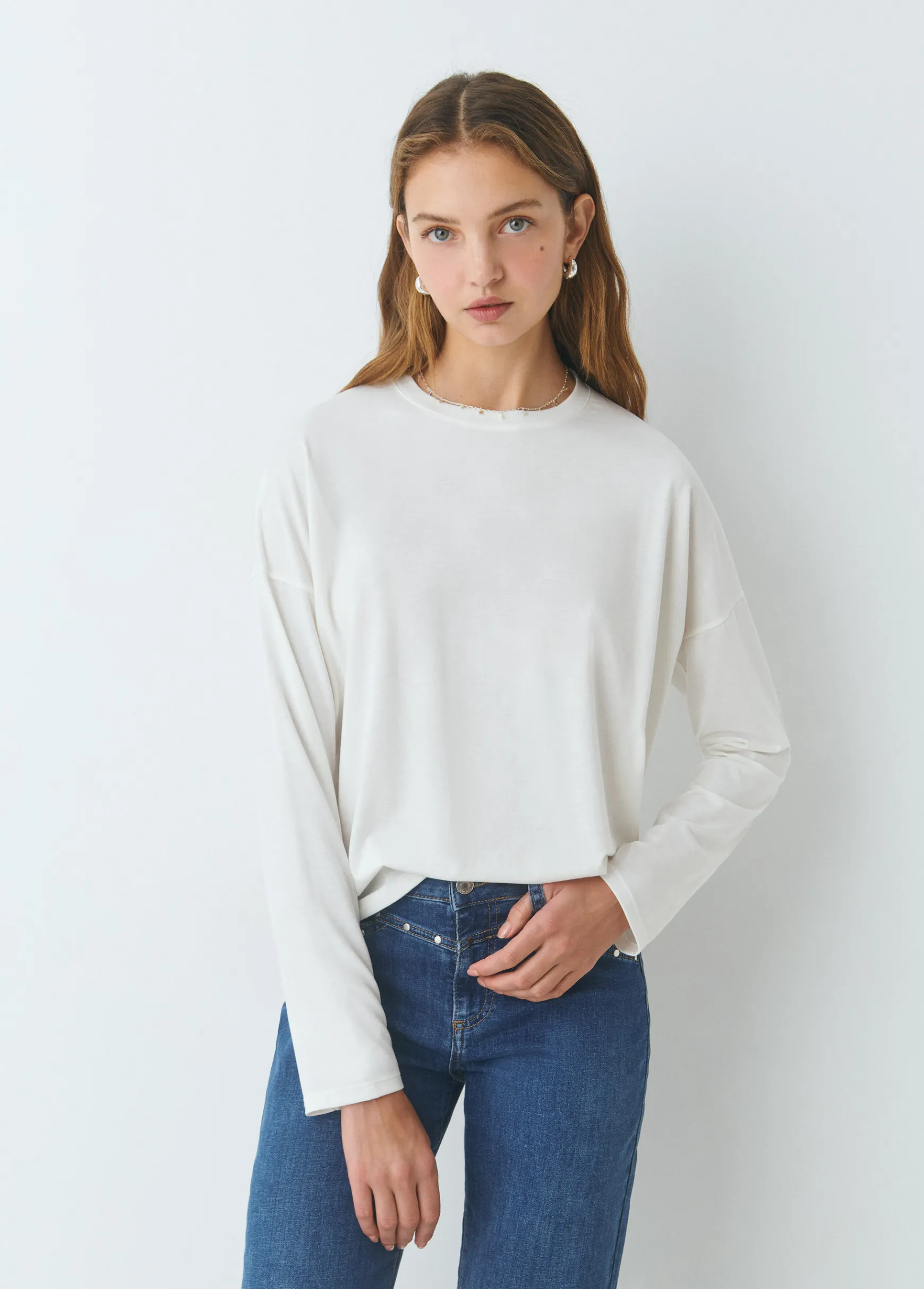 Camiseta de manga larga y cuello redondo.