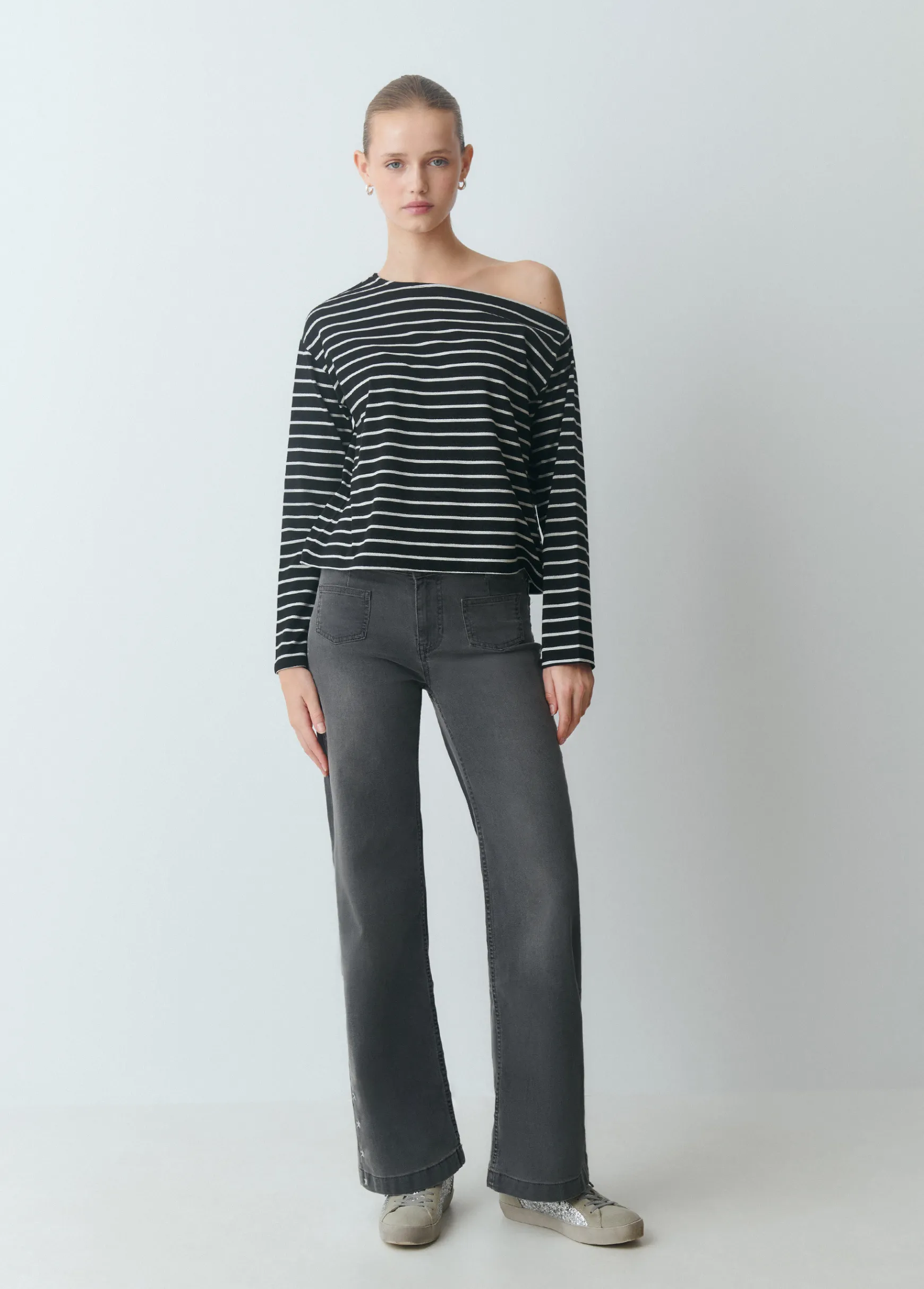 Camiseta de rayas de manga larga, escote de barco y detalles con lurex.