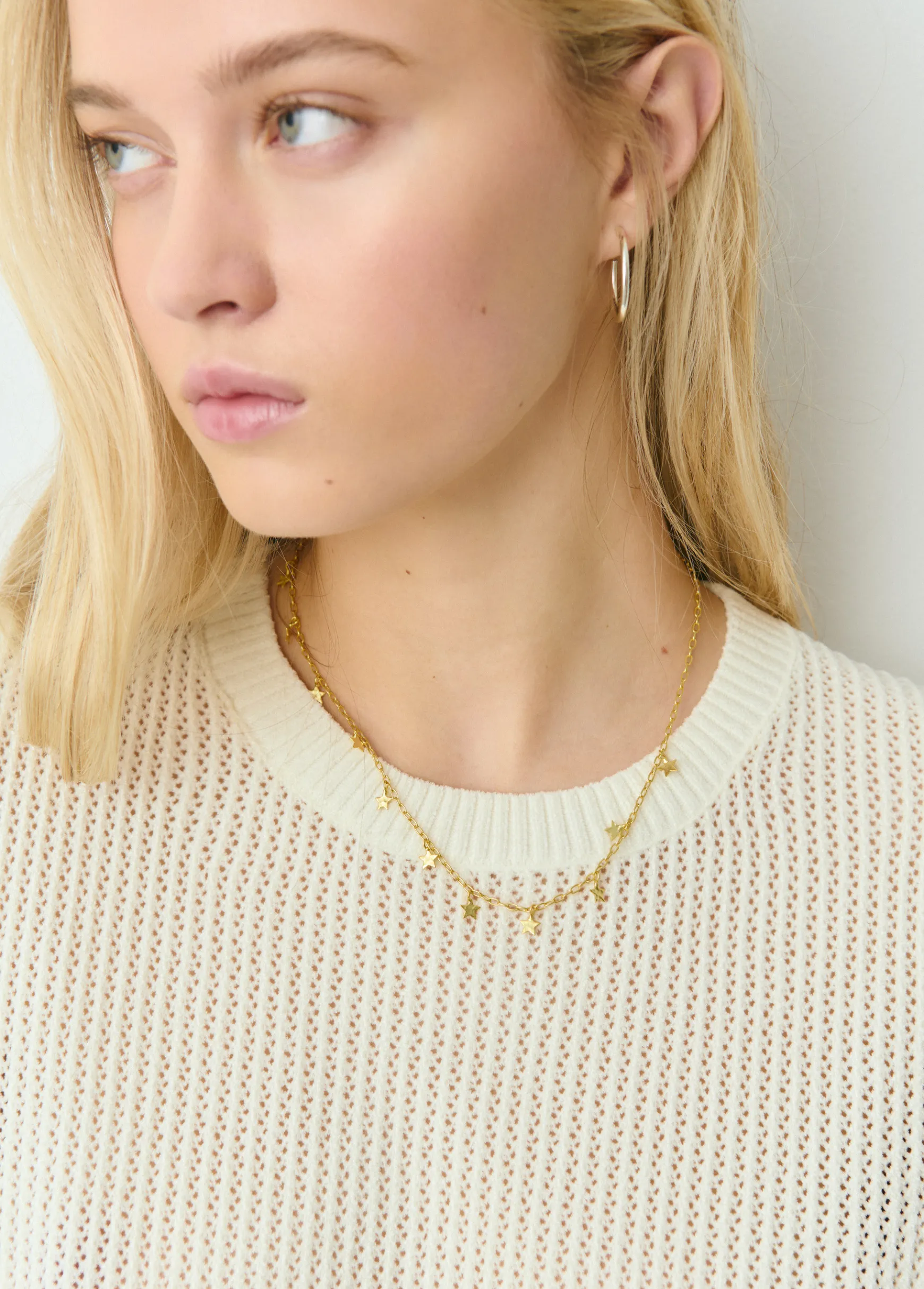 Collar dorado con detalle de estrellas. Cierre ajustable a varias medidas.