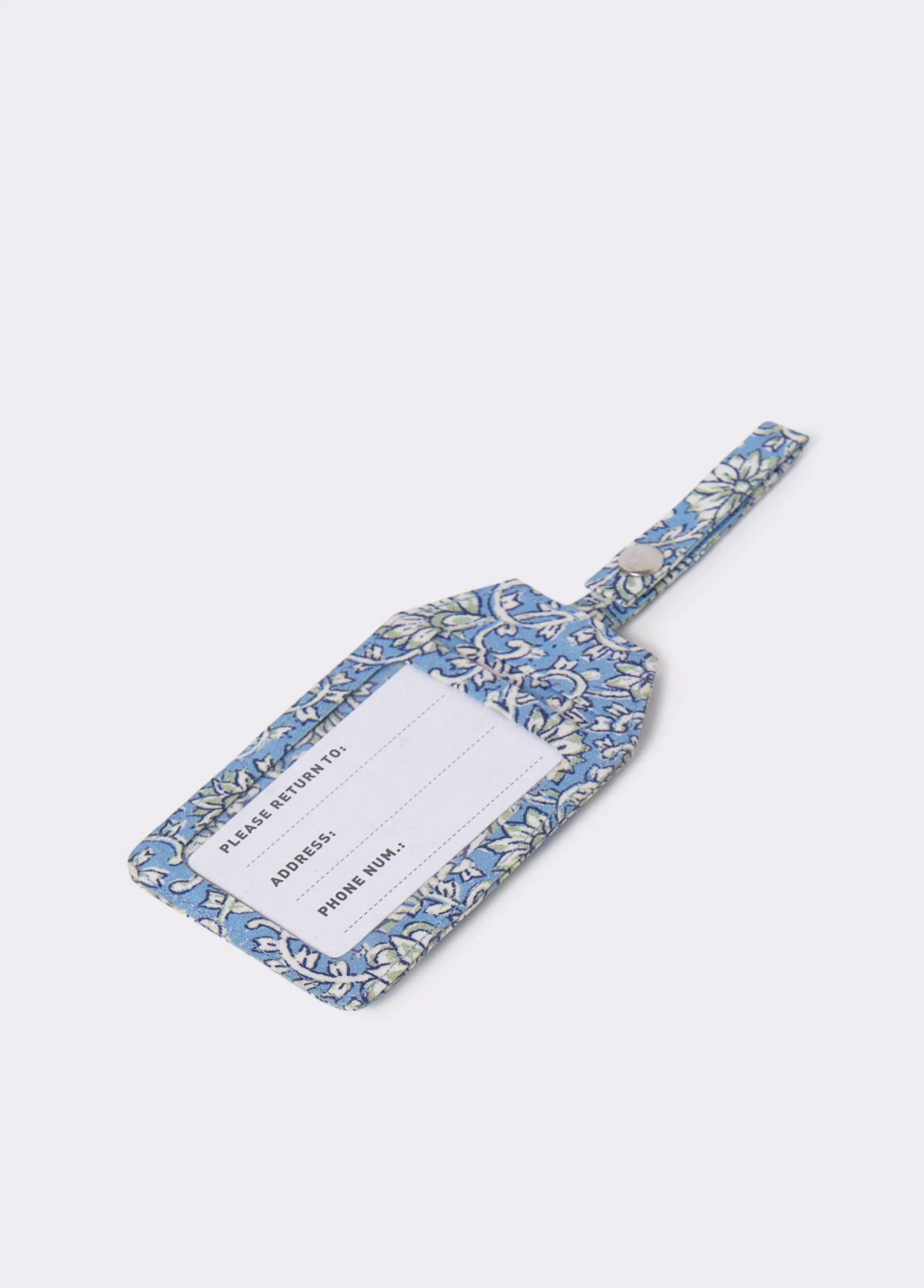 Etiqueta estampada de maleta con logo Brownie en la parte trasera y con espacios para añadir datos personales.