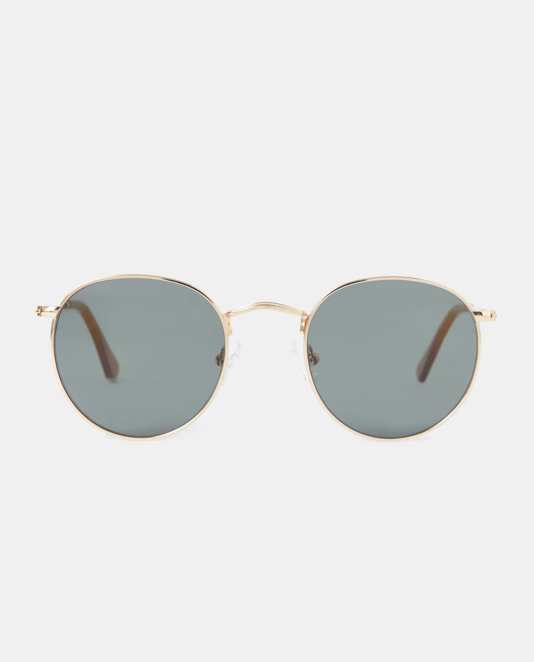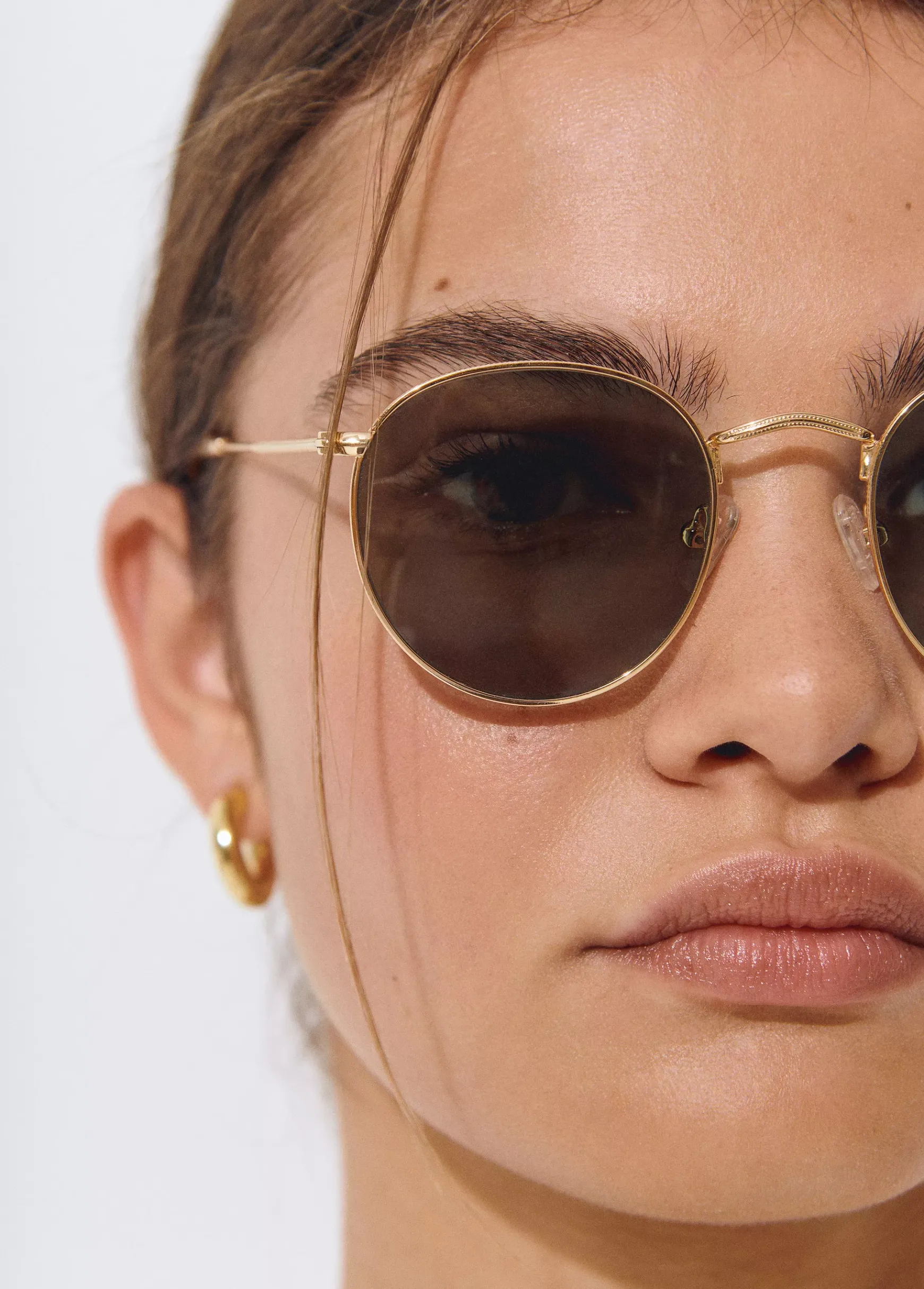 Gafas de sol metálica con montura redonda y color dorado.
