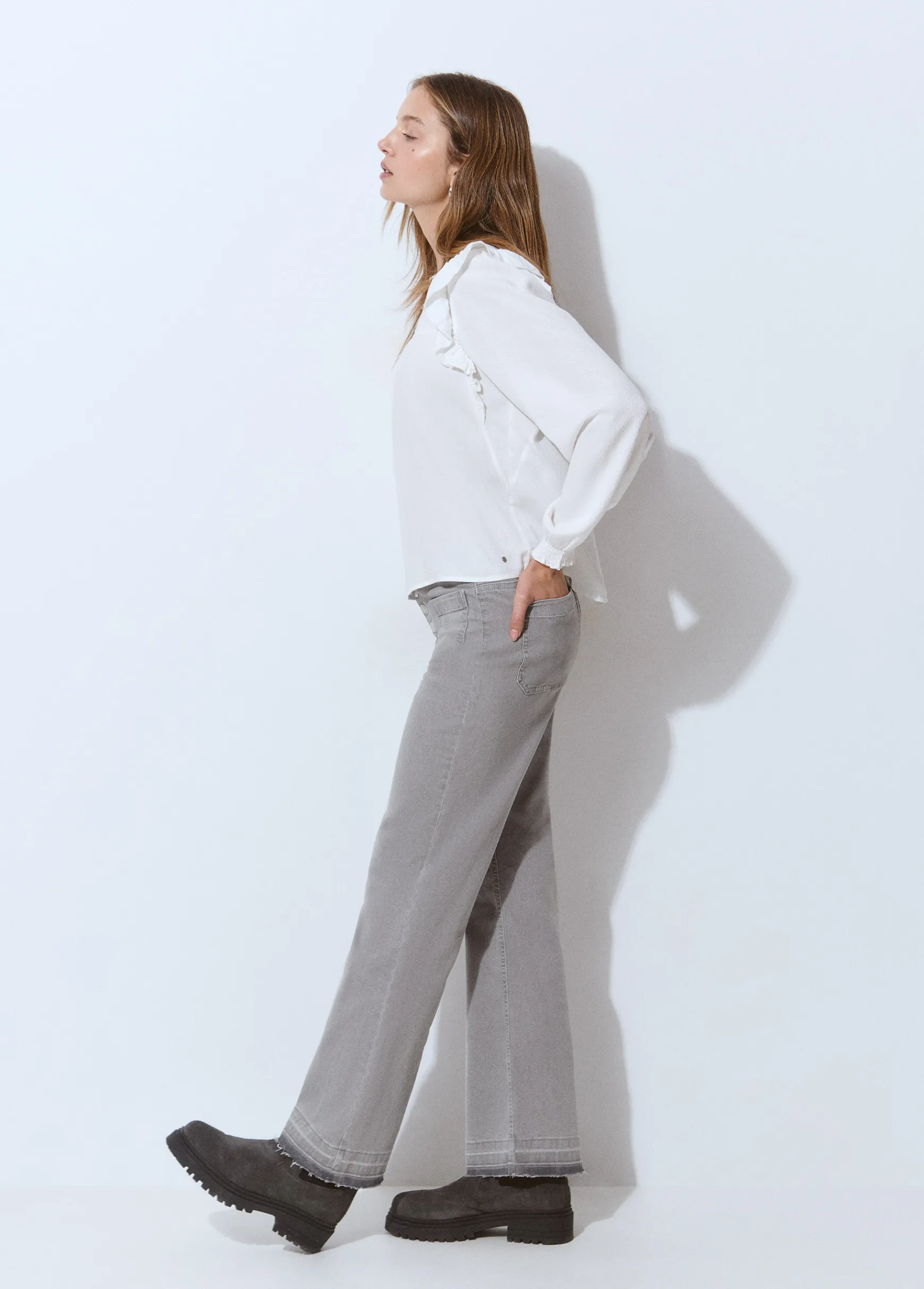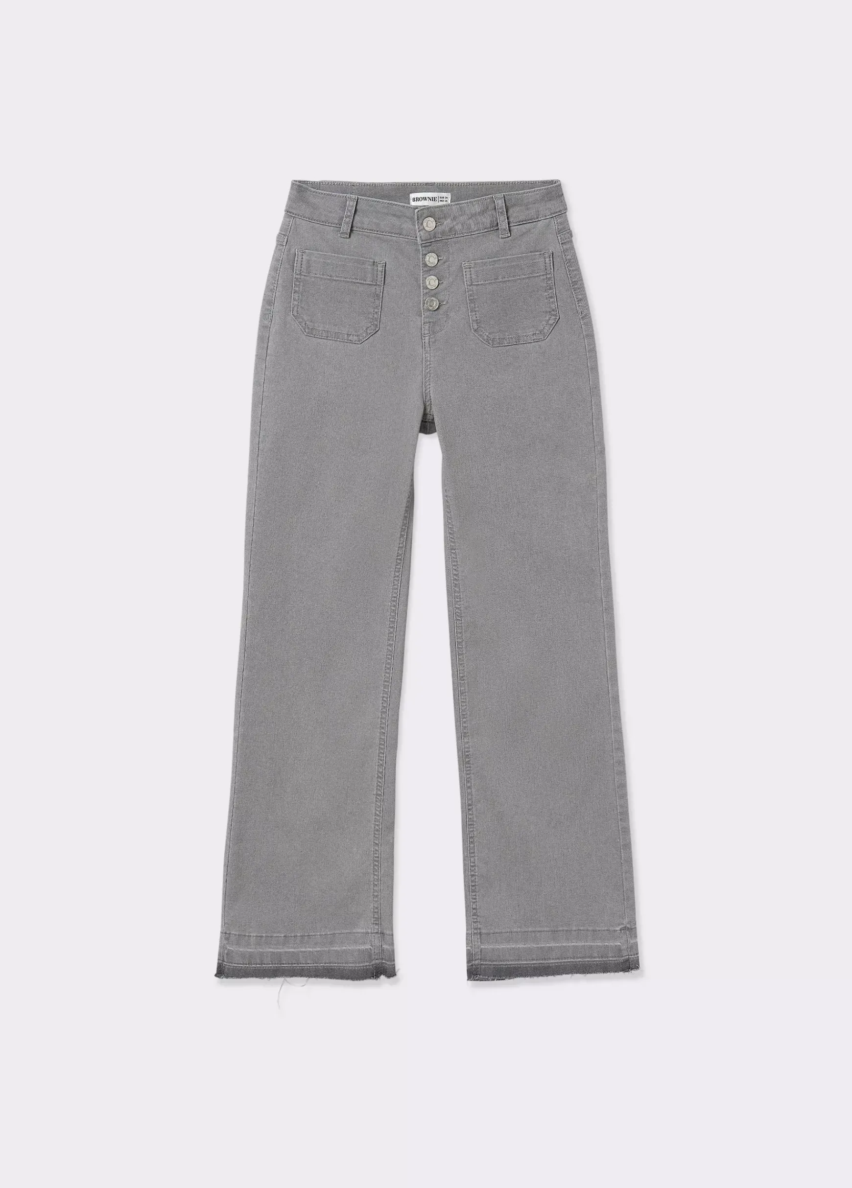 Pantalón culotte de tiro medio con bolsillos cuadrados y bajo desflecado. Cierre mediante botones en el frontal.