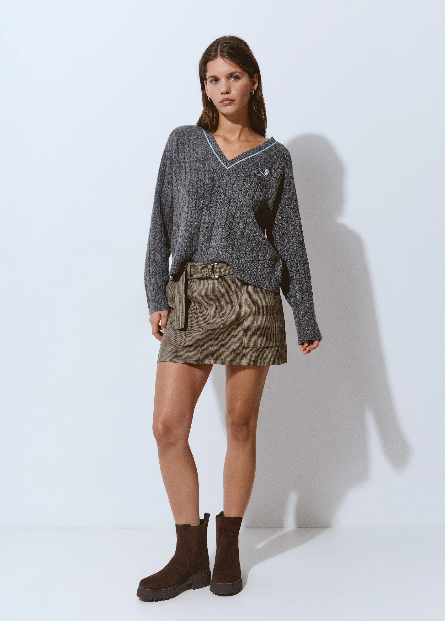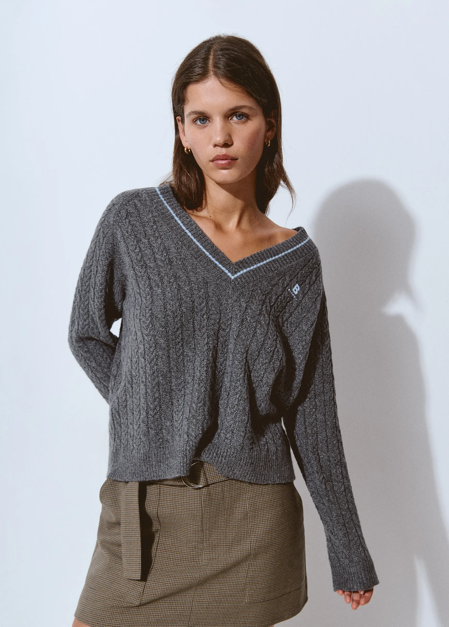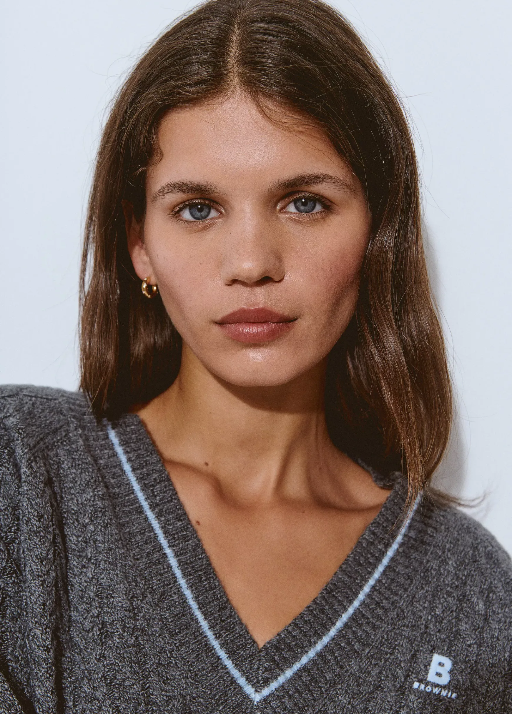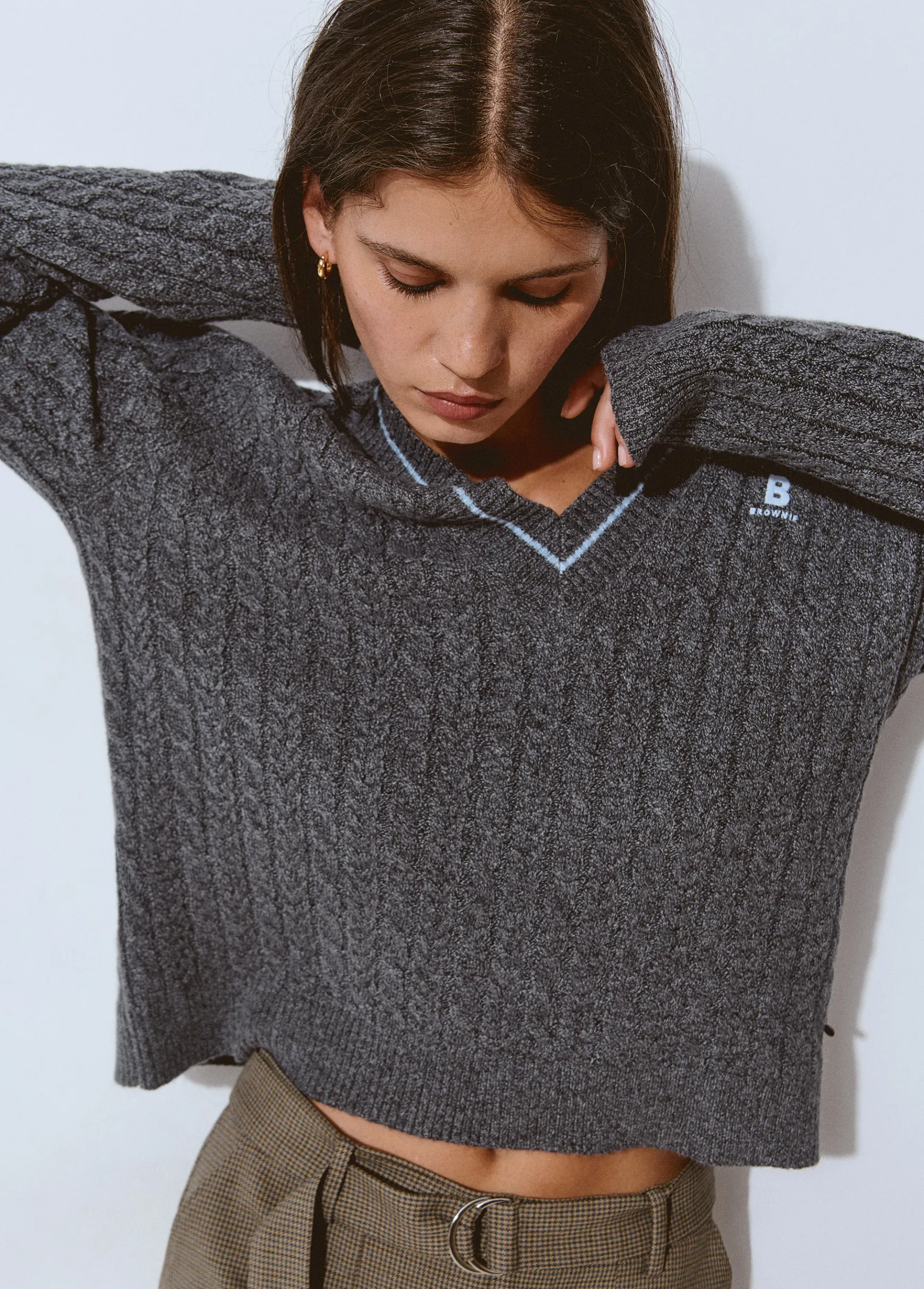 Jersey de manga larga, cuello de pico con raya a contraste y logo Brownie.