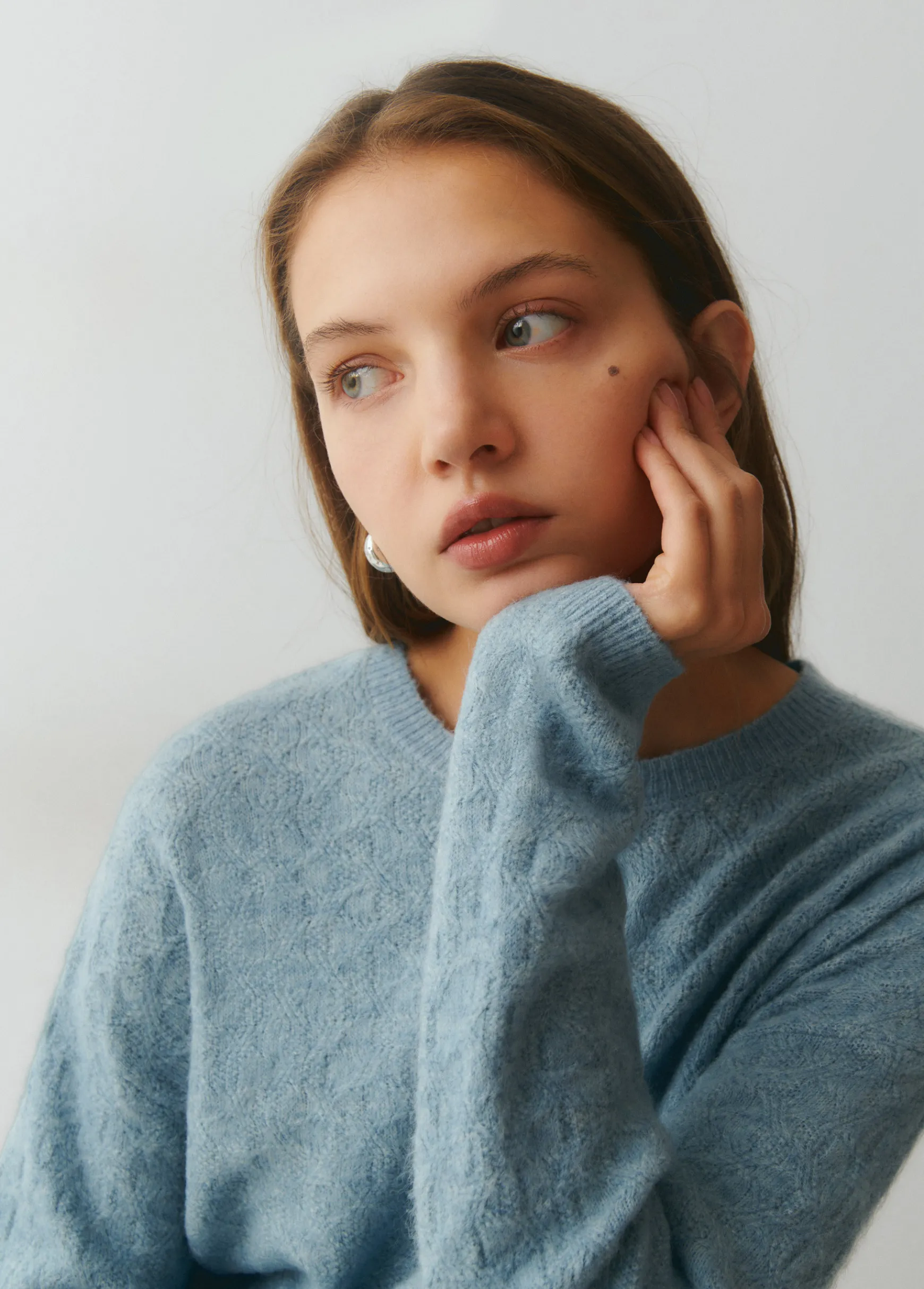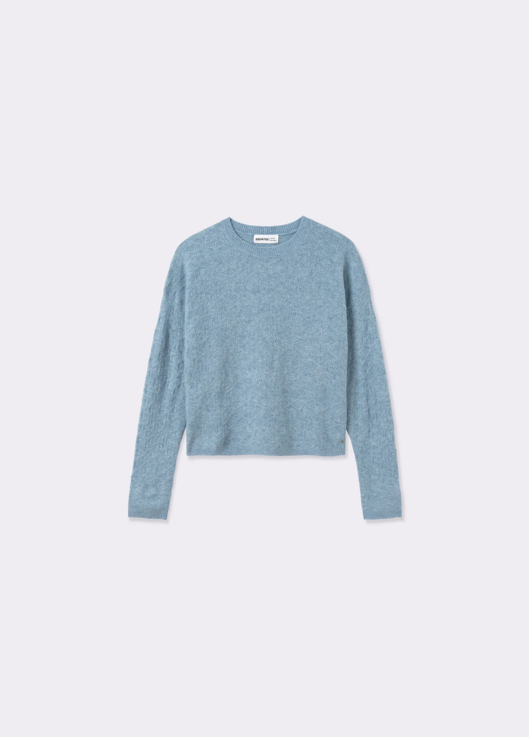 Jersey liso de punto de manga larga y cuello redondo.