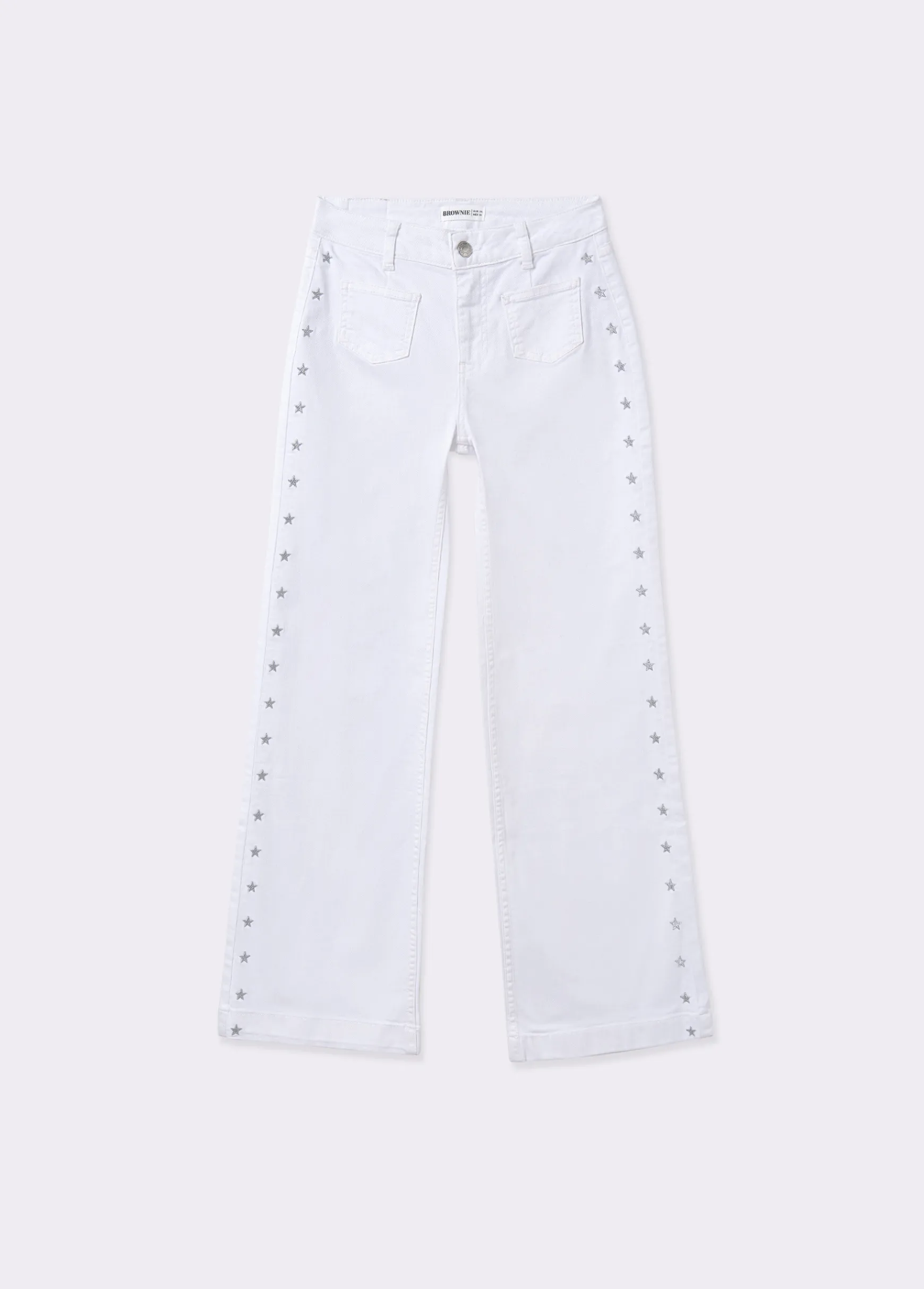 Pantalón culotte de tiro medio con bolsillos en la parte frontal y detalle de apliques metálicos de estrellas.