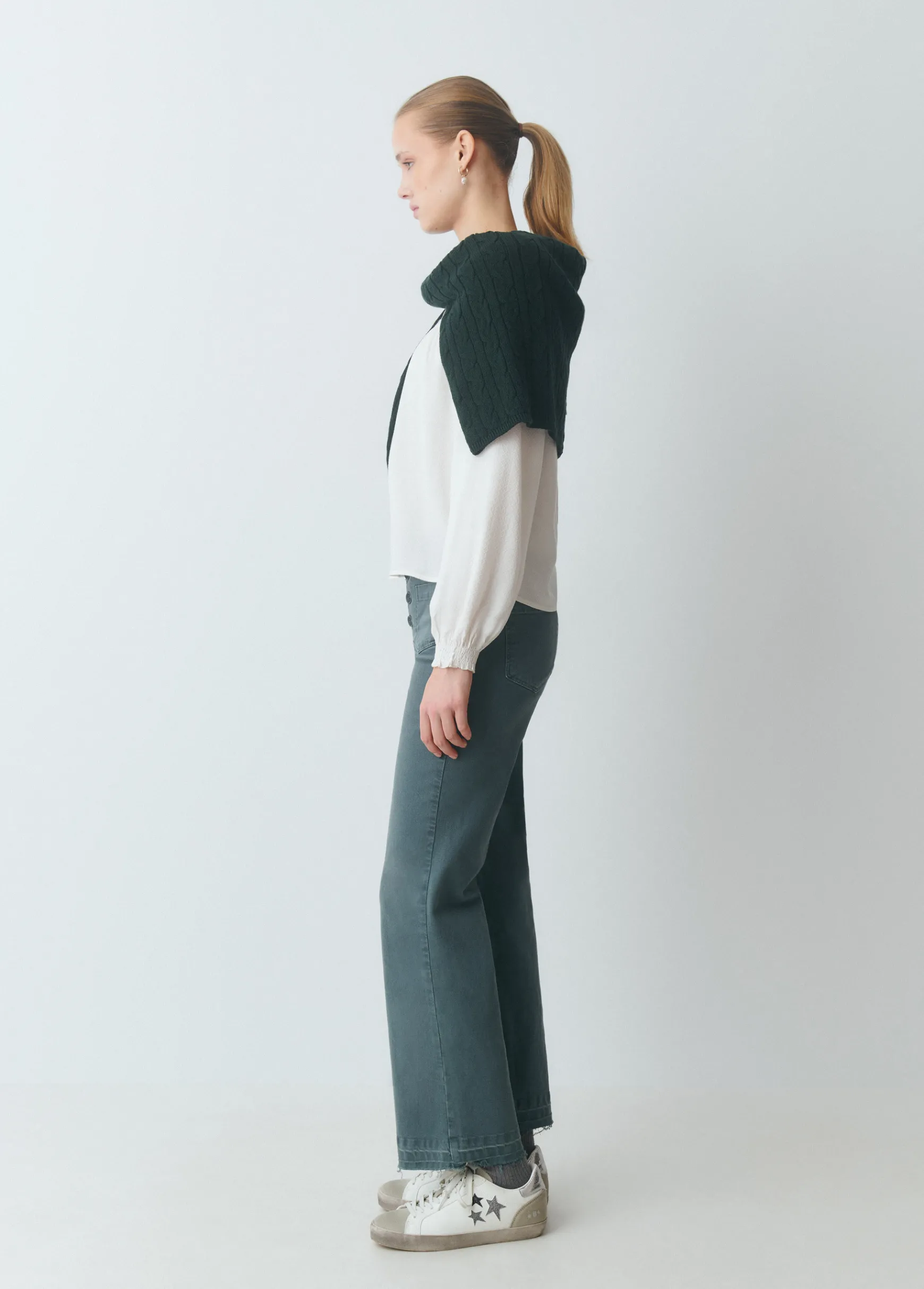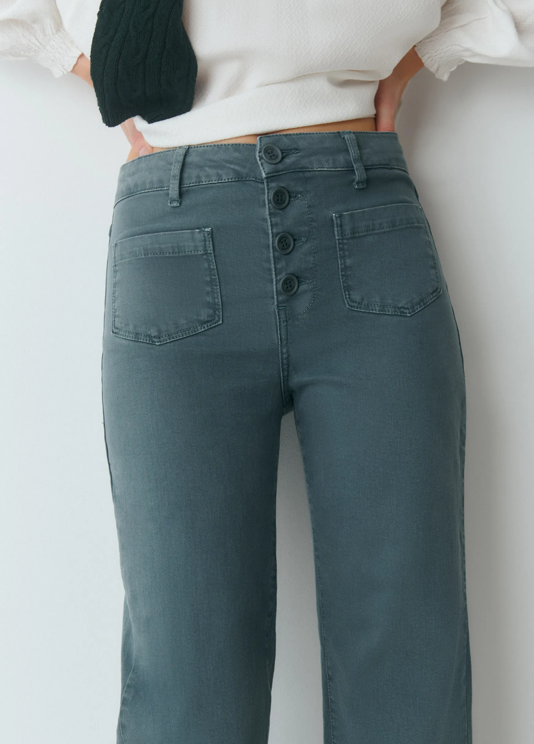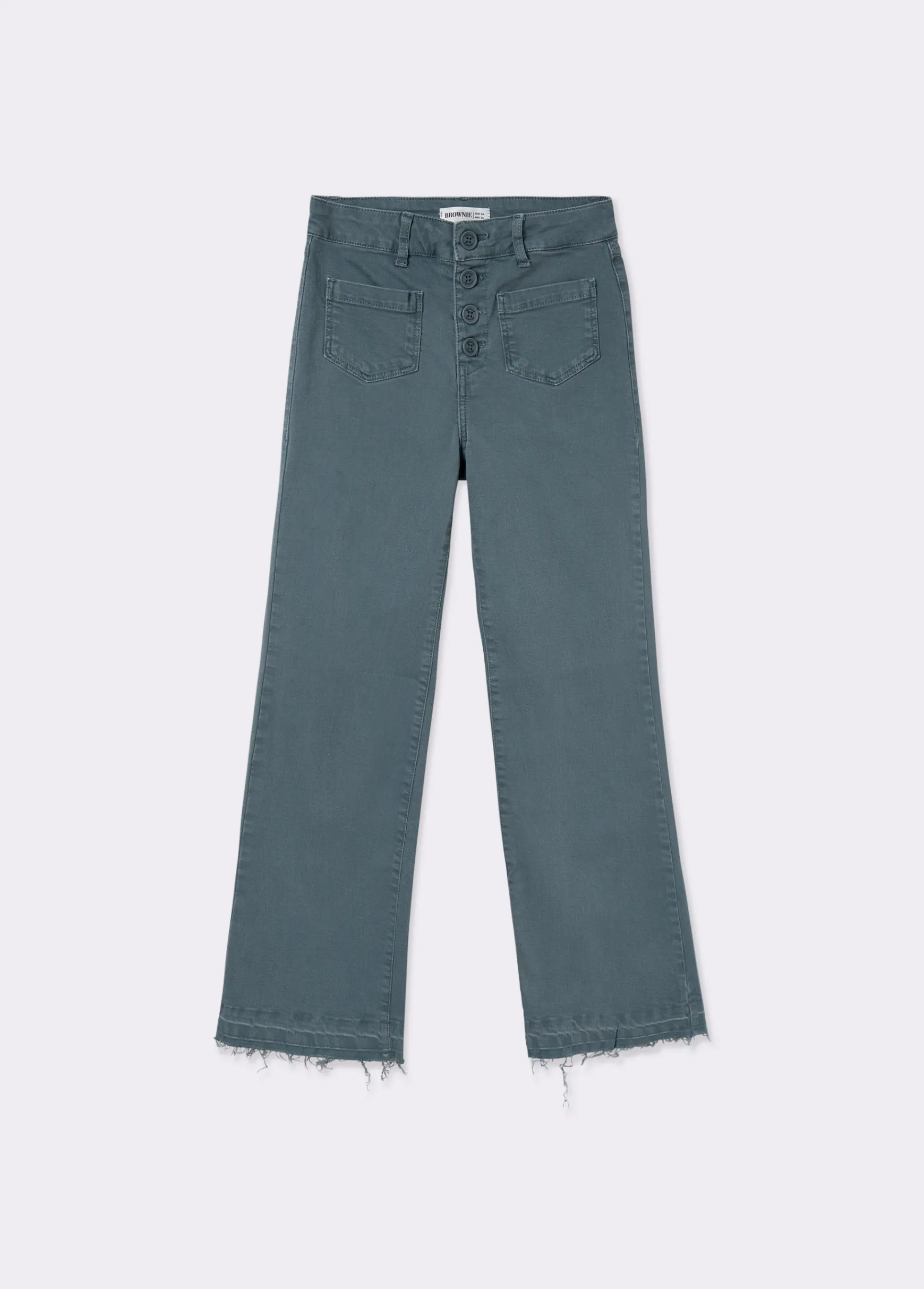 Pantalón culotte de tiro medio con bajo desflecado y botones en el frontal.