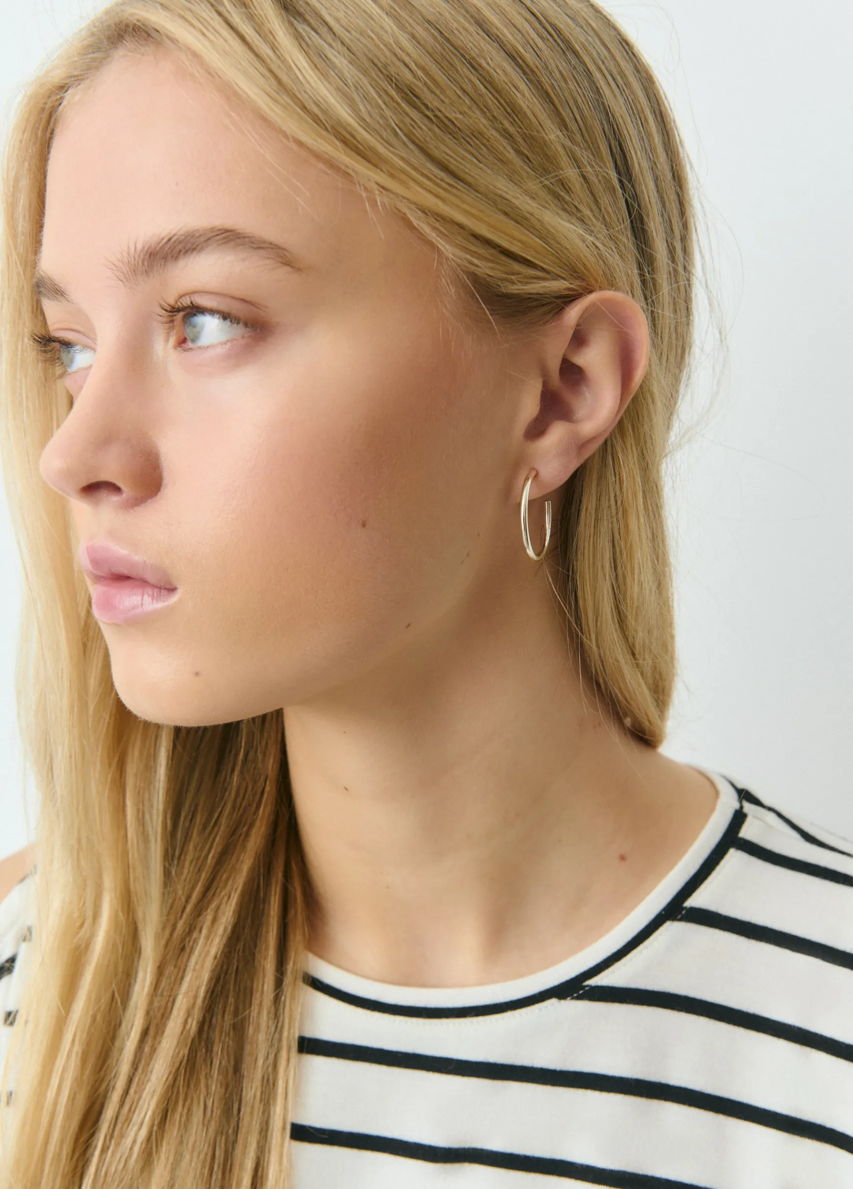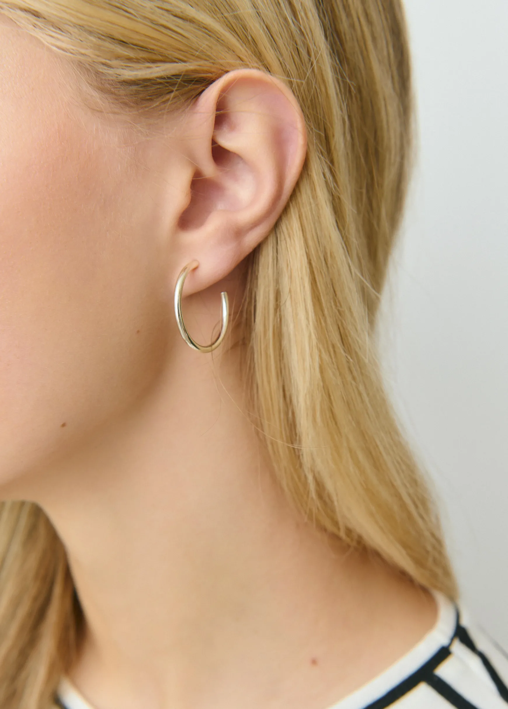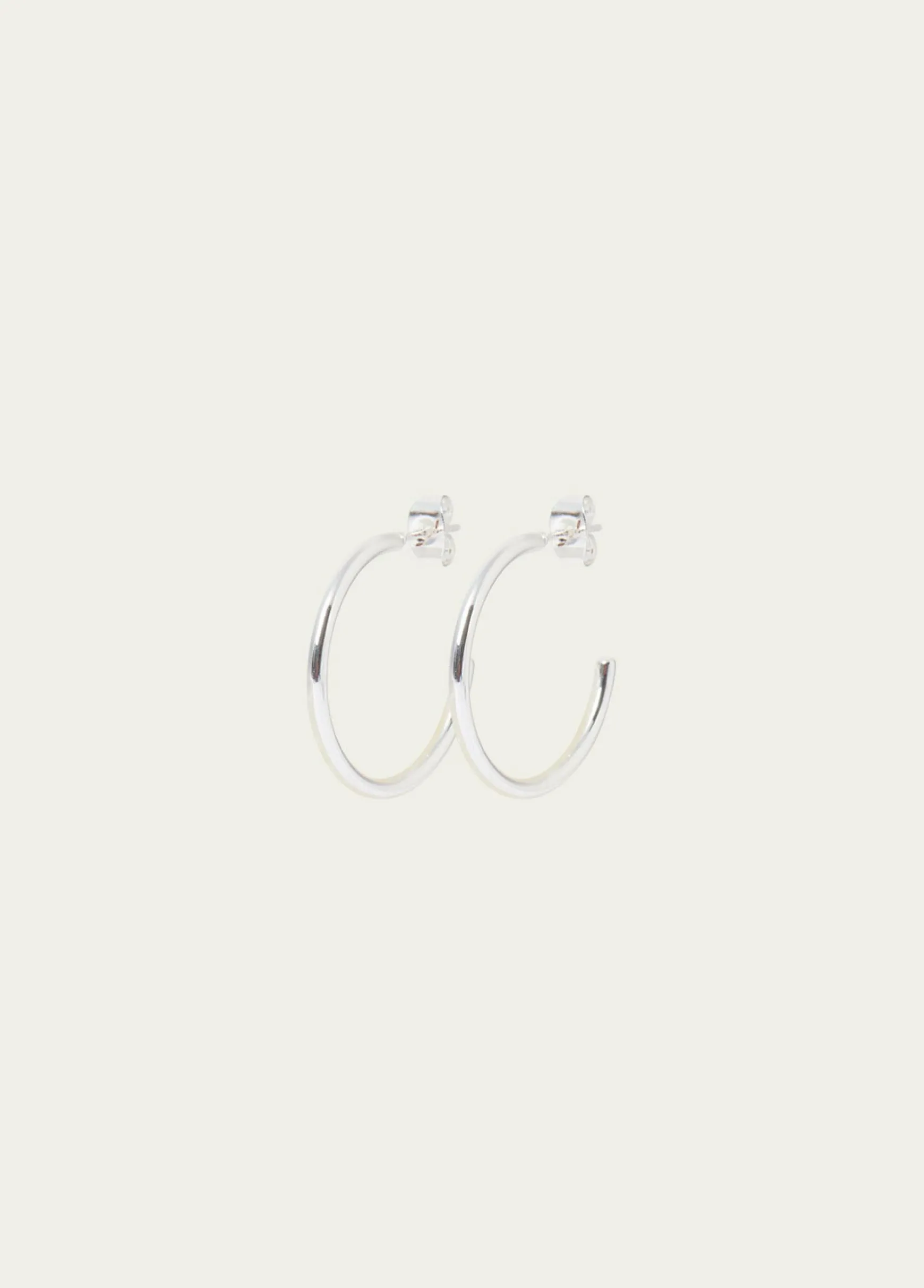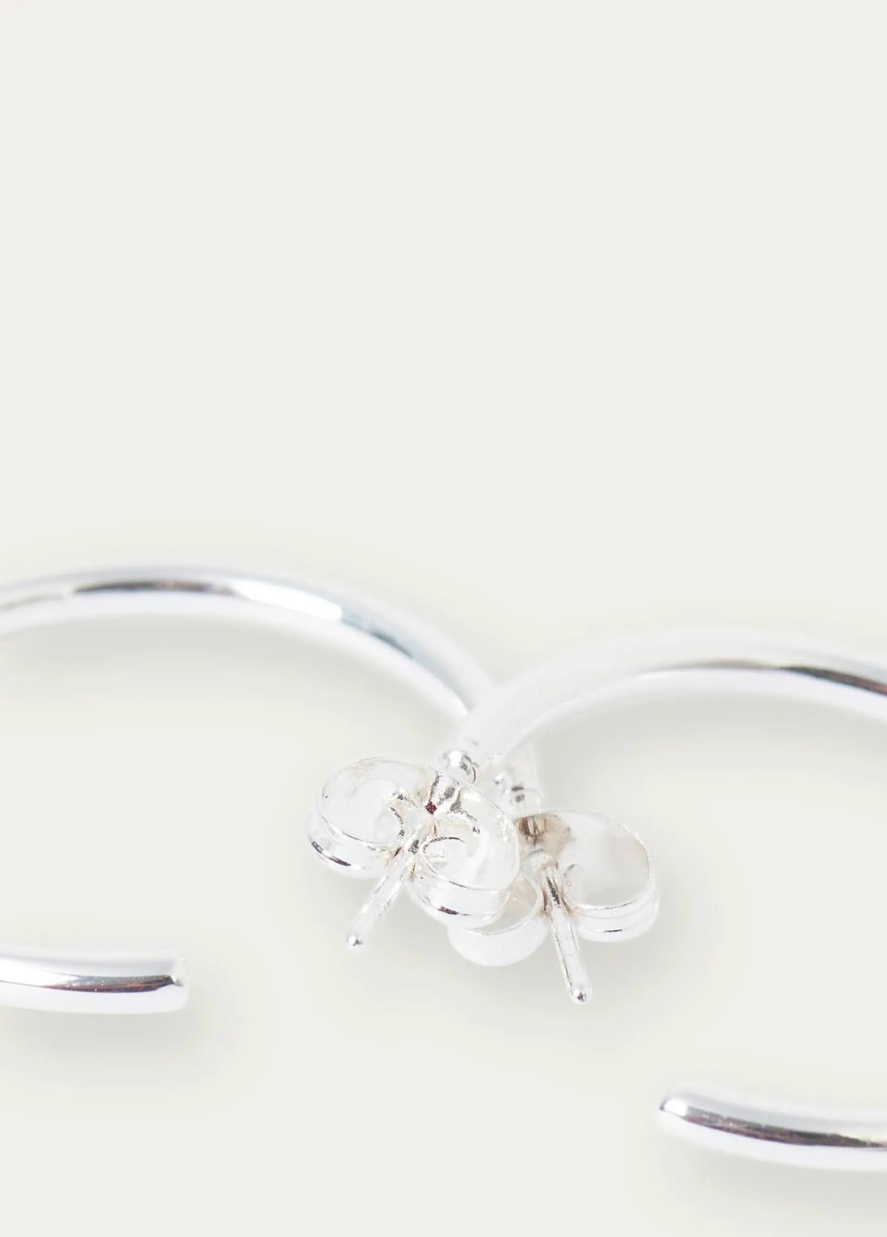 Aros de tamaño mediano en plateado con cierre mediante tuerca.