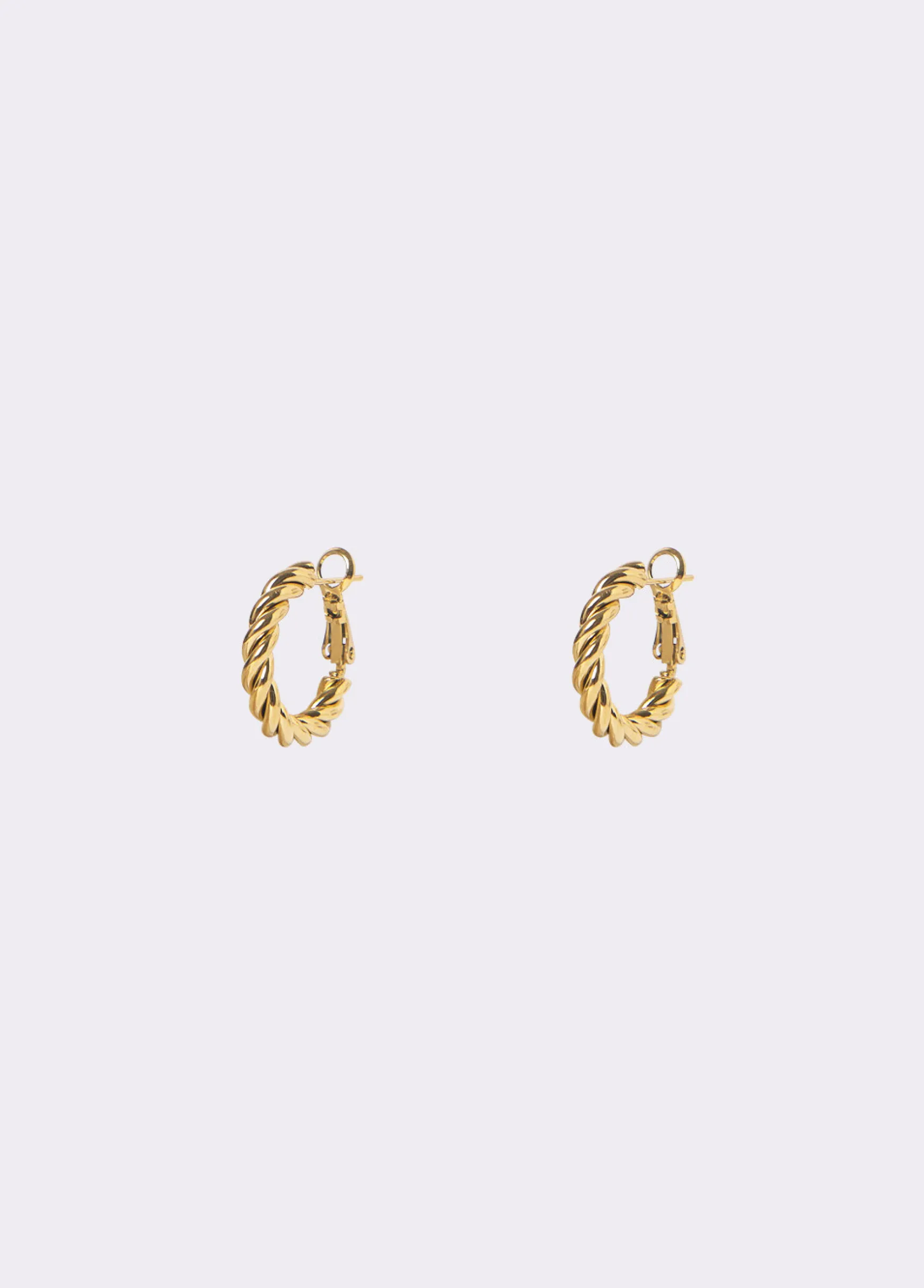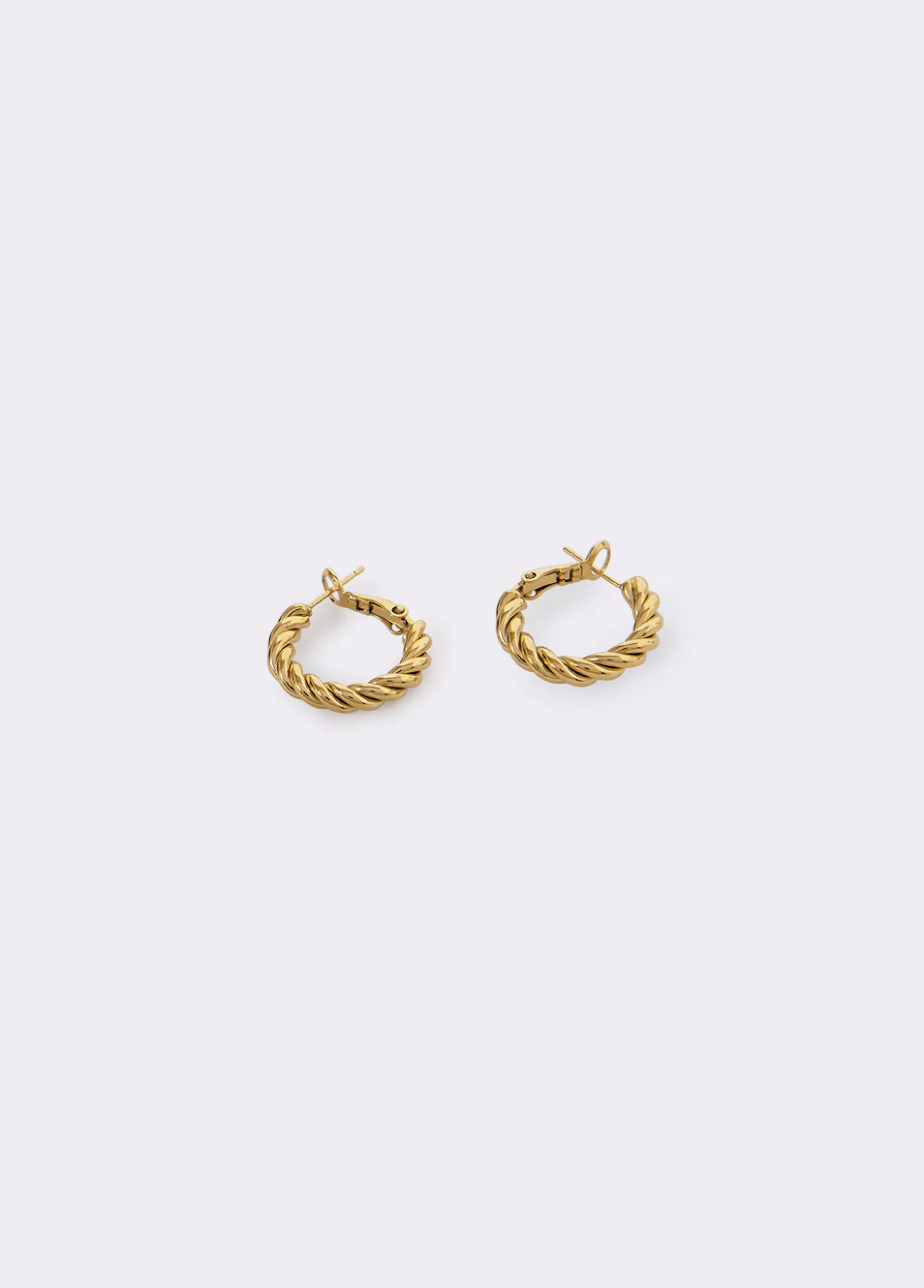 Pendientes de aro pequeños en dorado entrelazados. Cierre catalán.