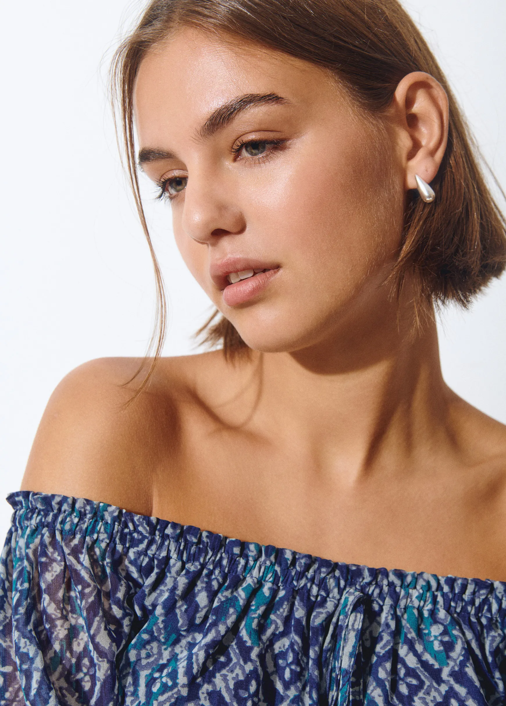 Pendientes plateados en forma de gota. Cierre de gancho.