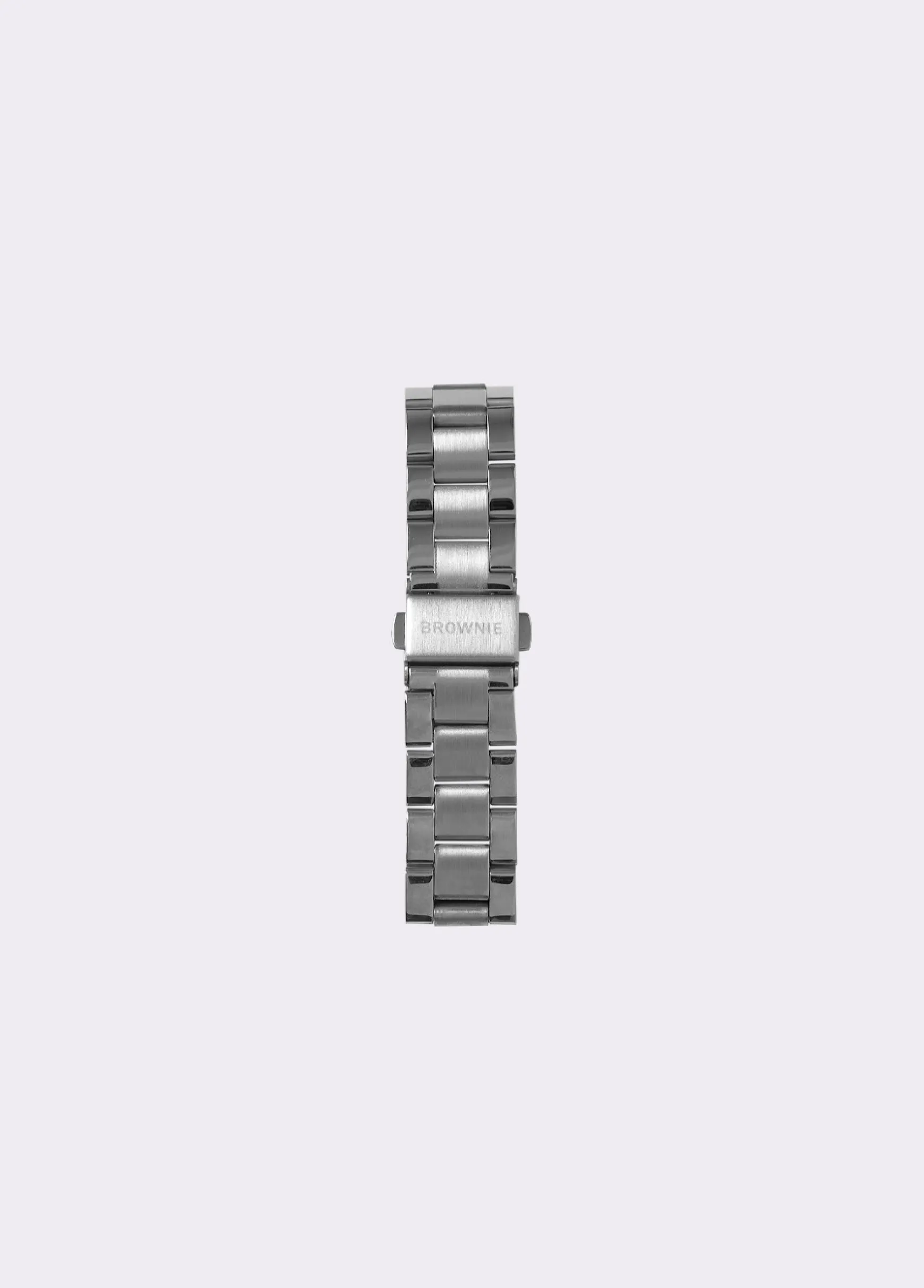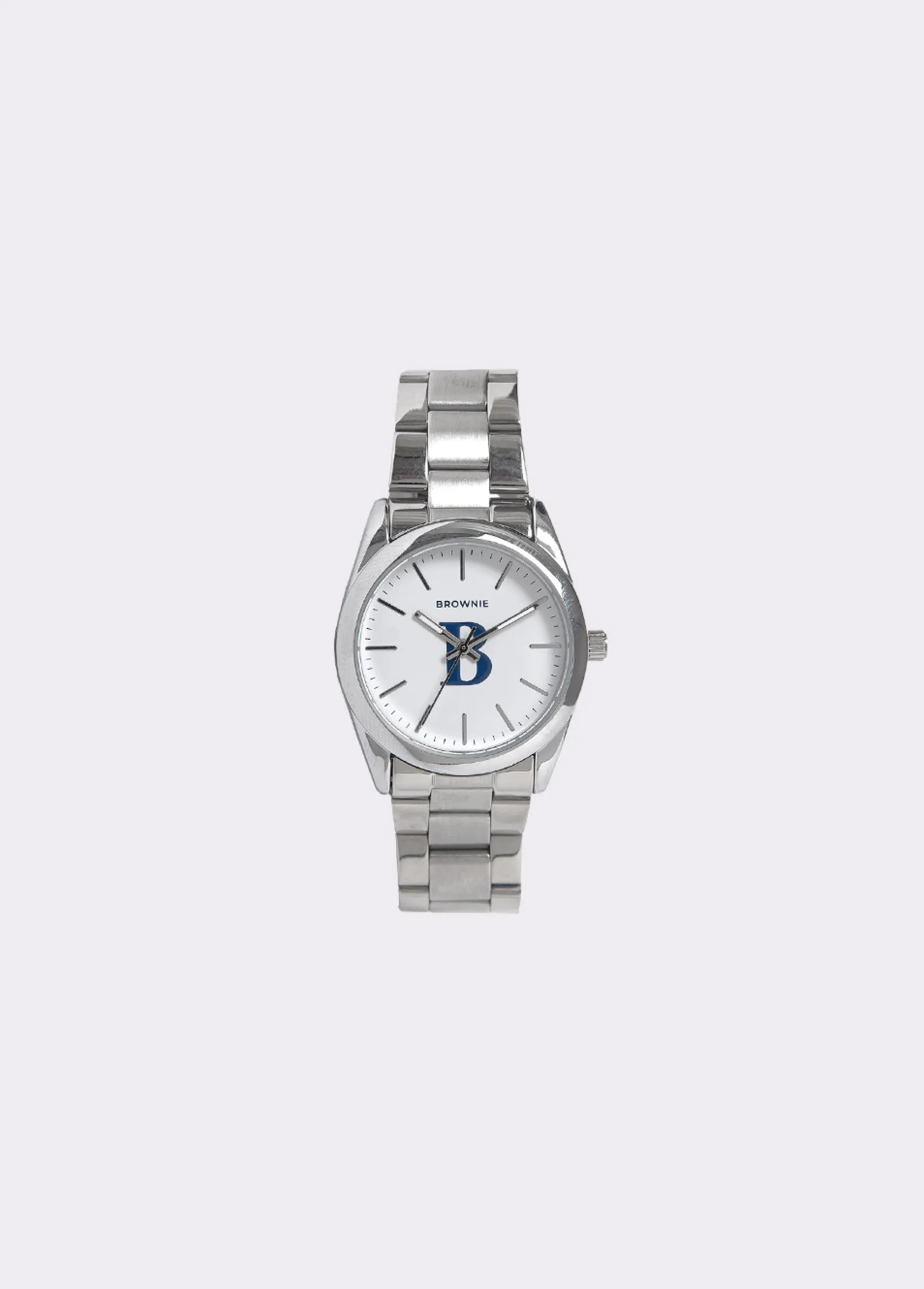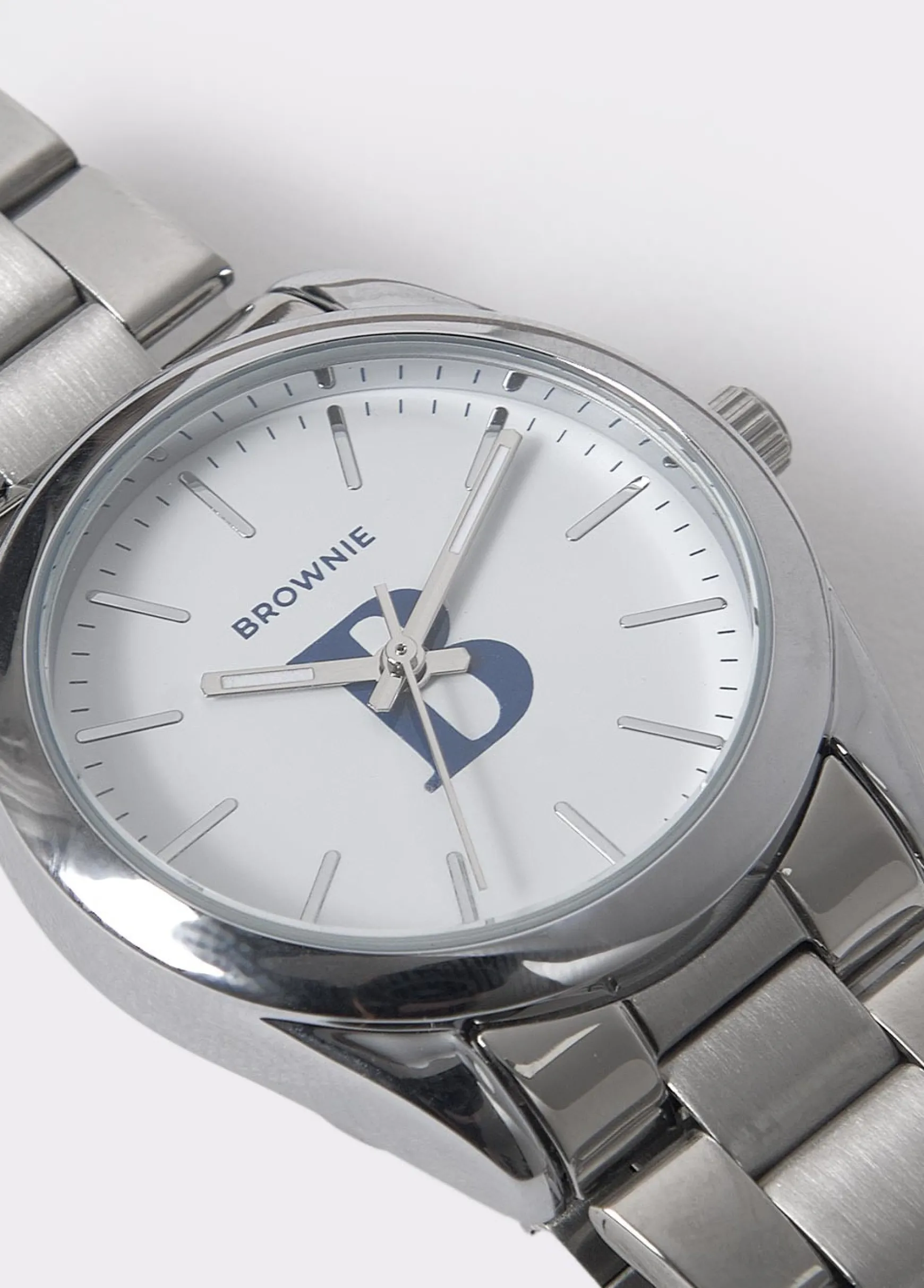 Reloj en acero inoxidable de 32 milímetros con esfera en color blanco y detalle de B en el centro.