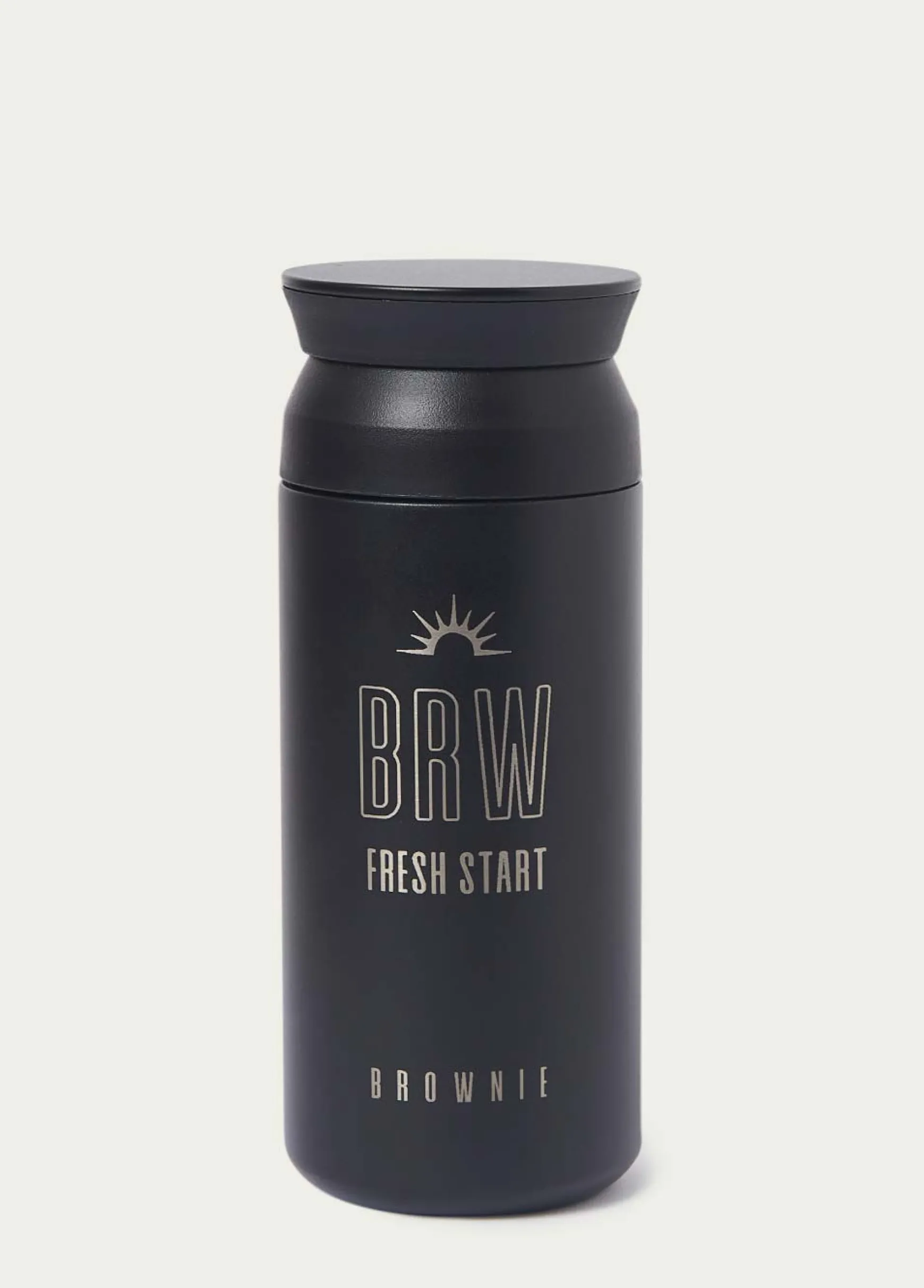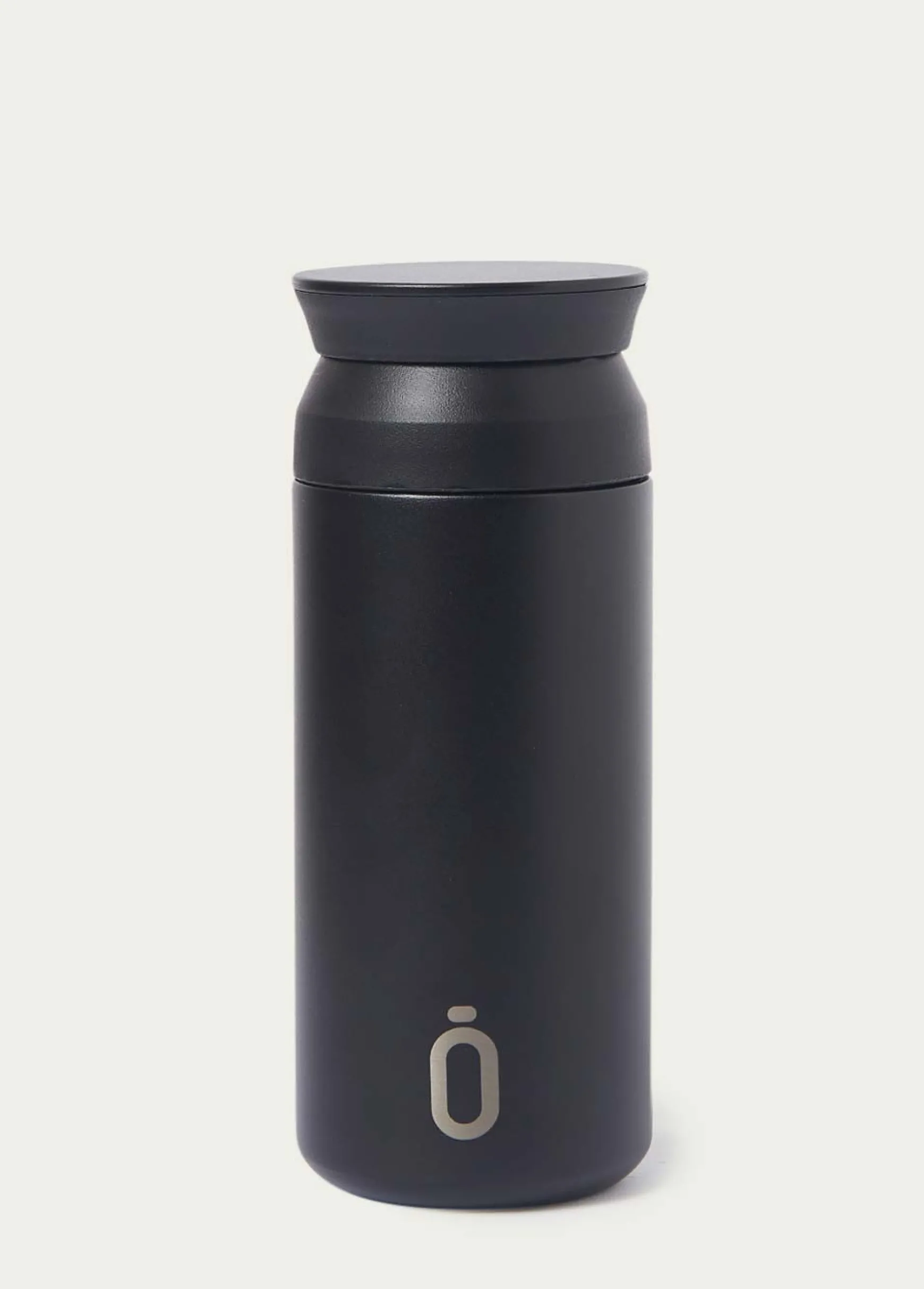 Termo para café negro de 35 cl con logo.Mantiene el contenido a unos 48 ºC tras 12 horas. En ambos casos la temperatura inicial del contenido es 88 – 90 ºC.